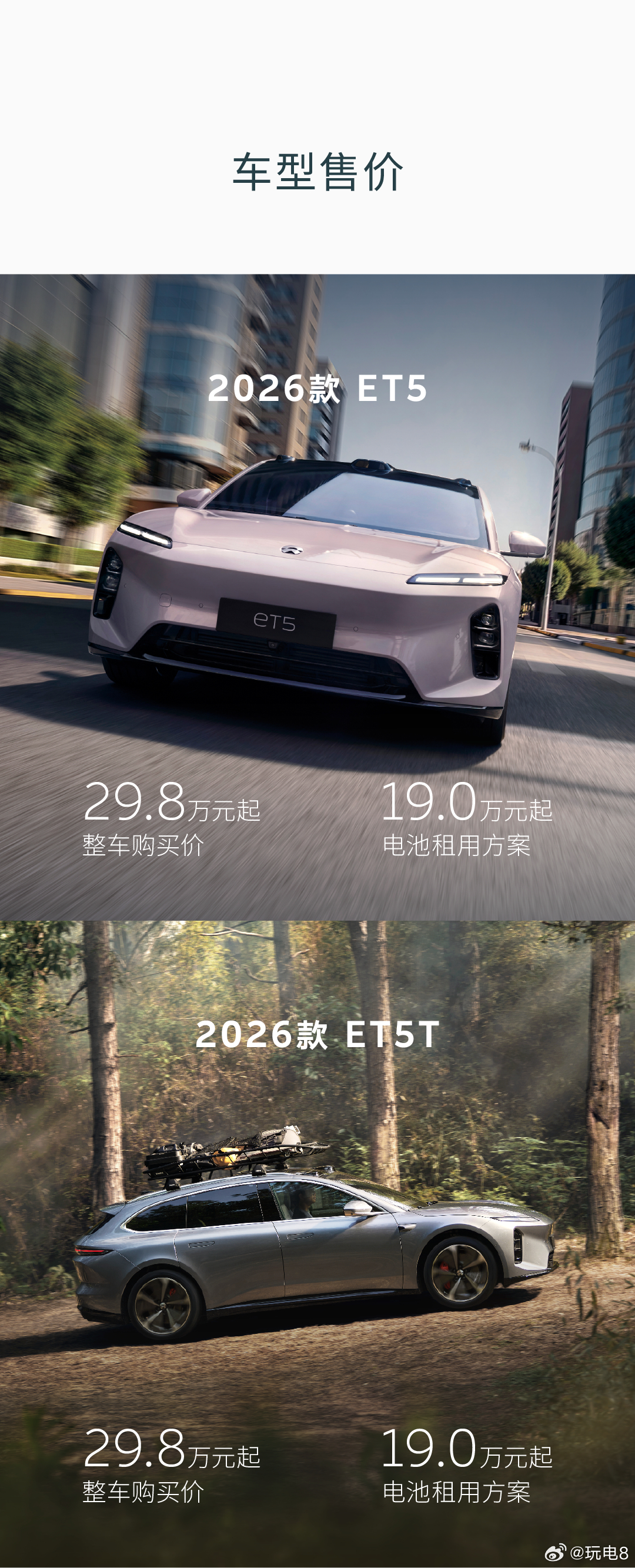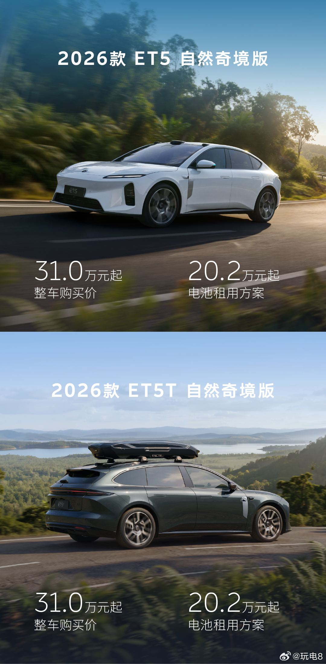 2026款蔚来ET5和ET5T迎来小改款,聚焦配置升级外观升级全新Moon 3.0套件,更显精致运动;全系标配“适享套装”:前排座椅通风+按摩、坐垫延长、方向盘/后排座椅加热、智能香氛+负离子净化,舒适性拉满!内饰全面升级Nappa打孔真皮+超纤丝绒顶棚,质感媲美豪华品牌。同时新增“辅助驾驶指示灯”(小蓝灯),提升智驾交互透明度。此次改款虽非换代,但多项原需选装的高阶配置全部下放为标配,诚意十足。起售价仍维持29.8万元(BaaS 19万元起),相当于“变相降价”。特别版“自然奇境版”同步推出,融合环保理念与自然美学。新能源汽车