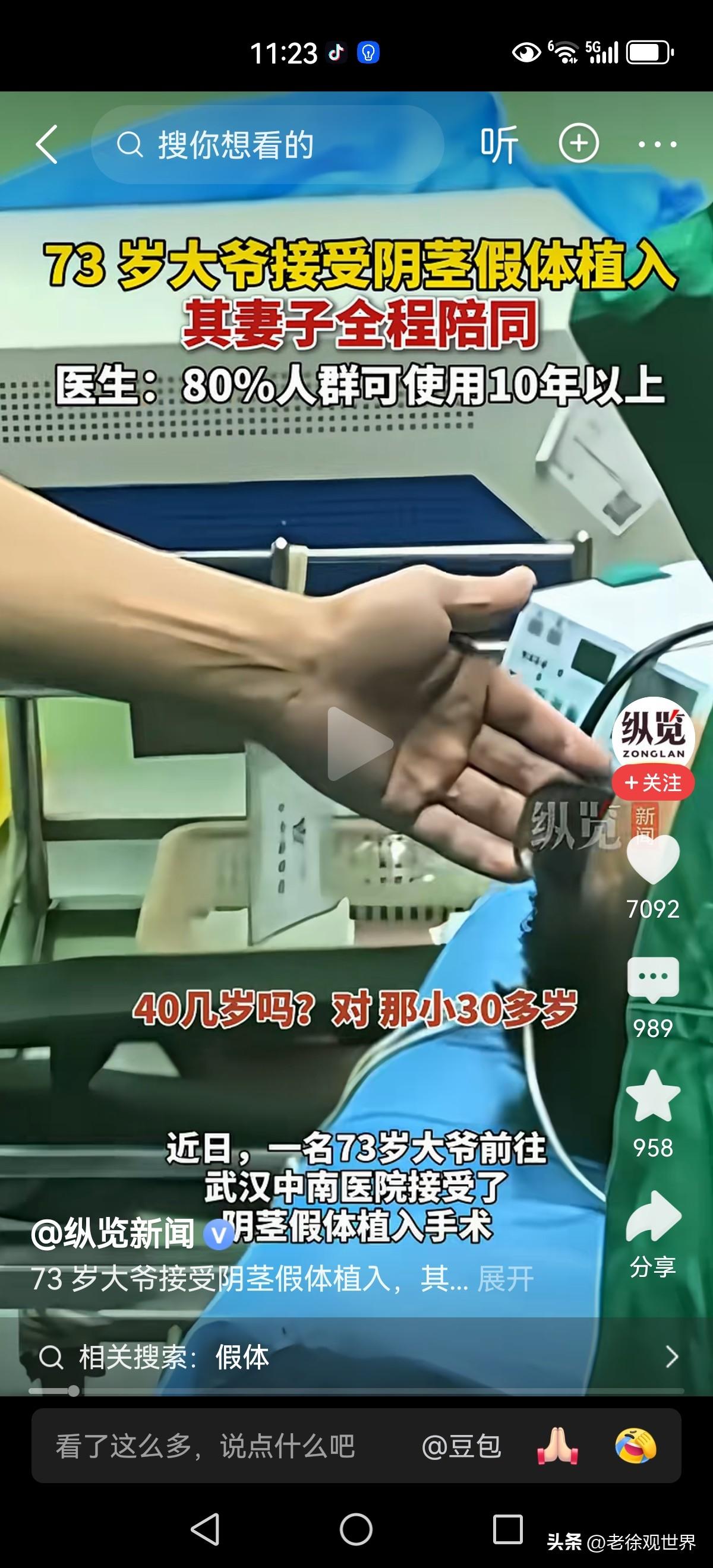 乖乖!73岁大爷接受阴茎假体植入手术。直言不讳妻子还很年轻,不影响感觉! 老爷子英雄迟暮但是宝刀未老啊!顶礼膜拜!!!