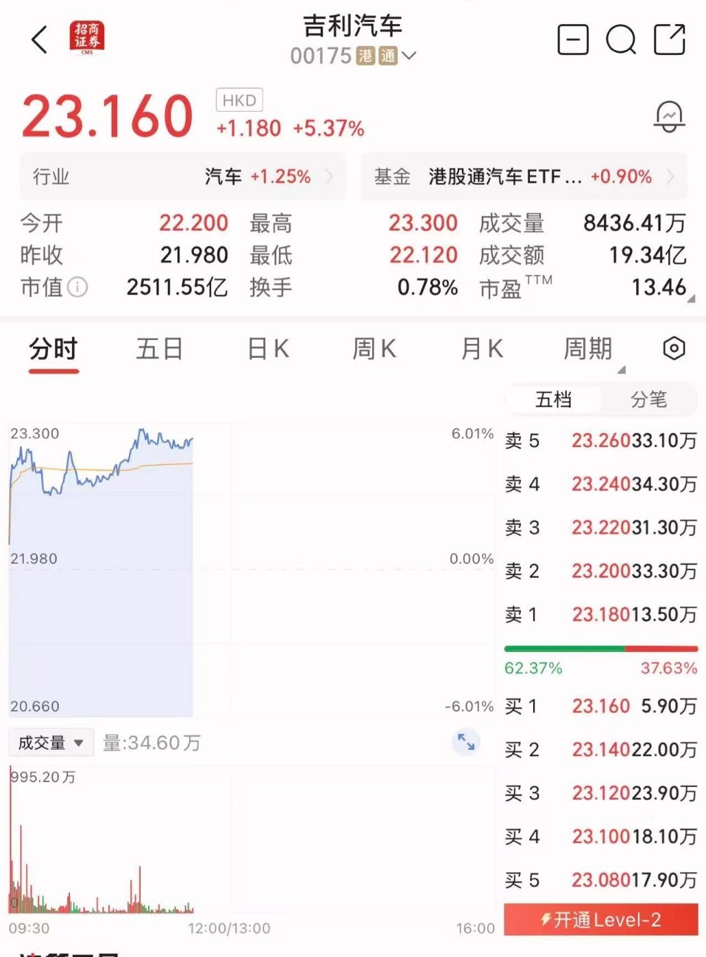 4月2日,吉利汽车(00175.HK)逆势走强,盘中涨超5%,股价报23.16港元,涨幅4.82%,创近四年新高,领跑港股汽车板块。近一月累计涨幅逼近50%。销量支撑强劲:2026年一季度销量超70.9万辆,登顶中国品牌一季度销量冠军。高端化提速:极氪、领克月销稳定4-5万辆;3月海外销量破8万辆,同比翻倍。4月极氪8X、银河M7等新车密集上市,增长动能充足。此轮上涨由销量兑现、高端突破、海外放量、新车周期共同驱动,基本面扎实,估值有望持续重塑。