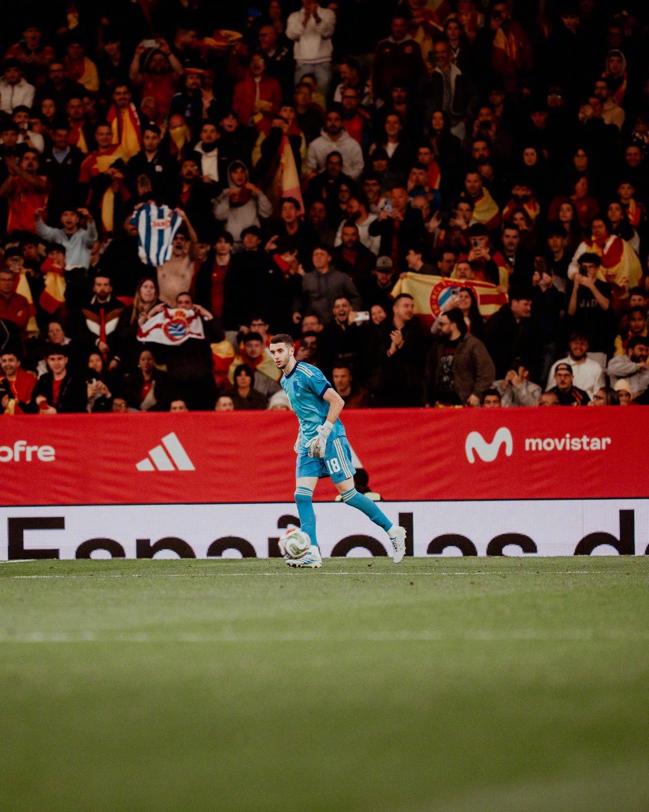 🎉祝贺乔安·加西亚完成个人职业生涯西班牙国家队首秀!赛后他更新个人社媒⬇️💬“非常开心和自豪能实现梦想,完成我在西班牙国家队的首场比赛。感谢所有人的支持🇪🇸🧤”