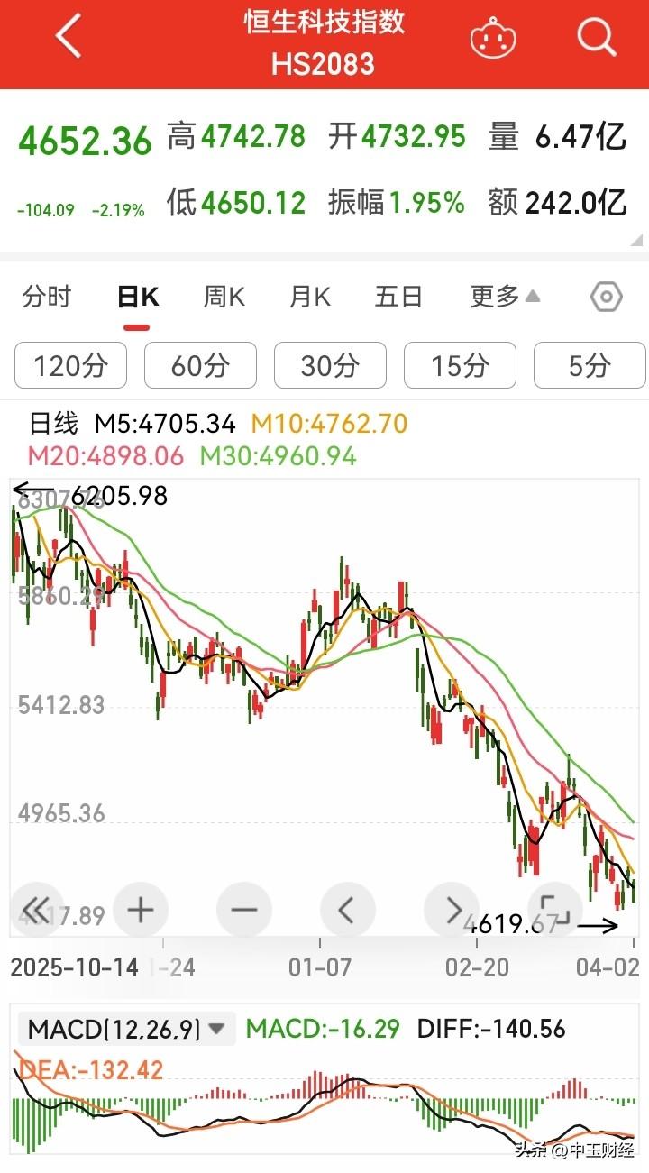 恒生科技指数今日再破跌破4700点,真不是啥好兆头,它狠狠给高估值科技股敲了警钟。 自2025年10月触及6715.46点的阶段性高点后,这指数就一路下坡,至今累计跌幅超30%。 前期是全球科技指数估值收缩、消费赛道走弱,后期赛道分化、竞争加剧,让板块表现差得离谱。投资者一定要防范风险,其中的部分股票业绩很差,前景黯淡,但价格却高的离谱!