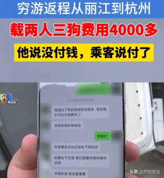 浙江杭州,薛先生自驾到西藏旅游,顺手接了个返程拼车,随后沿着滇藏线出发至丽江接客,经过两天行程到达了杭州,车费4450元,乘客告诉薛先生会半小时内扣款,就扬长而去。可怜的薛先生半小时根本没有收到付款,现在已经在杭州等了几天了,乘客出示了付款截图,偏偏他就是没收到,这其中到底有什么玄机? 薛先生由于工作压力大,就准备着开车到西藏游玩散心,欣赏完美景后,心情大好,就琢磨着,如果能有回程单就好了,可以分担下旅途成本。 没想到运气这么好,还真有乘客发布22号丽江到杭州的单子,果然心情好了以后,什么事都顺。 后来经过沟通,乘客要求21号出发,薛先生虽然还想再休息一天,还是按照乘客的要求赶到了丽江。 接到乘客后,路途漫漫,偶尔也会和两位女士聊聊天,在服务区两人遛狗吃饭,还给薛先生买了瓶饮料,薛先生认为遇到了好人,而且有美女相伴,时间过的更快,23日到了目的地。 运营方界面显示车费为4450元,乘客主动说,自己已经支付过了,现在如果再付就重复付款了,半小时内肯定能收到。 虽然和乘客只有两天的相处,但是毕竟不是私下接单,有运营方作为后盾,再说这年头还有吃“霸王餐”的吗?就没当回事,悠然去洗车了。 洗完车,半小时早就过了,车费还没有收到。 薛先生就打电话给乘客,乘客说付了,薛先生又给客服联系,得到的回复是没有收到这笔款项。 这下他慌了,2500公里,4000多块钱呢?又给乘客联系,乘客坚称付过了。 沟通没有结果,薛先生报警。民警找到乘客,乘客仍说付过了,这次还出示了付款截图。 薛先生看到截图,当场表示疑问:付款金额是对的,4450元,有零有整,就是这笔车费,可是时间不对,付款时间是18日。 时间完全对不上,23号才显示完整车费,18号就付款了,存在造假嫌疑。 乘客自恃持有付款截图,对薛先生的沟通不予理睬。 此时薛先生已经从半小时付款,待了好几天,仍没结果,就联系了调解员。 调解员上门与乘客沟通,乘客闭门不出,就是坚持自己付过款了,别打扰自己休息,再打扰就报警了。 让她出示付款截图,她以睡觉为由赶走调解员。 调解员给客服联系,对方回复,这笔钱乘客“取消支付”了,他们没收到这笔钱。 对于如何处理,客服给出了人性化的处理方案:对于薛先生的车费,他们给予特殊垫付,同时终止了乘客的叫车服务。 从整件事来看,薛先生并没有失误之处,接乘客是通过运营方,准时接到乘客,而且安全送到目的地。 乘客下车自动付费的流程确实存在,薛先生没收到款项时,也是主动联系乘客要钱,要钱未果及时报警,对付款截图提出疑问。 薛先生每一个环节没什么大问题,可是就是没要到钱,程序流程很清晰,各方都有道理。 最终结果还不错,运营方垫付。 但是每个人都有一杆秤,朴素的正义感早就知道错在哪里? 《民法典》第五百七十七条:当事人一方不履行合同义务或者履行合同义务不符合约定的,应当承担继续履行、采取补救措施或者赔偿损失等违约责任。 两位女士与运营方成立了客运协议,如果拒不付款,按照此条款规定,不但要补付车费,薛先生在杭州因为要车费的损失也要由两位女士承担。 《治安管理处罚法》第六十三条规定,有下列行为之一的,处十日以上十五日以下拘留,可以并处五千元以下罚款;情节较轻的,处五日以上十日以下拘留,可以并处三千元以下罚款:(一)伪造、变造或者买卖国家机关、人民团体、企业、事业单位或者其他组织的公文、证件、证明文件、印章的; 如果乘客真的伪造了车费截图,恶意逃单,换取免费乘车服务,那么受到的处罚更严厉,不仅要被罚款,还会被拘留。 贪小便宜吃大亏,给未来的道路留下瑕疵,实在得不偿失。