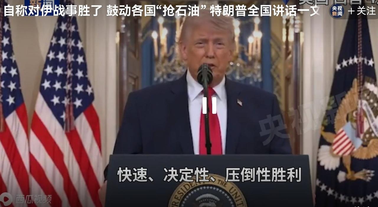 🔥 特朗普“胜利”讲话:满嘴跑火车,只想甩锅跑路! 4月1日,特朗普发表全国讲话,他自称“完胜伊朗”,鼓动各国去霍尔木兹海峡“抢石油”,要么买美国高价油。这波操作太“懂王”。嘴上吹“海空核设施全摧毁”,话音刚落伊朗就导弹砸以色列,脸打得啪啪响 。 这摆明是美国自己不想再死人耗钱,就把中东烂摊子扔给其他国家,自己躲在后面卖石油赚暴利,算盘打得震天响。 仗我打完,锅你们背,利我独吞,典型的是想坐山观虎斗、火中取栗。