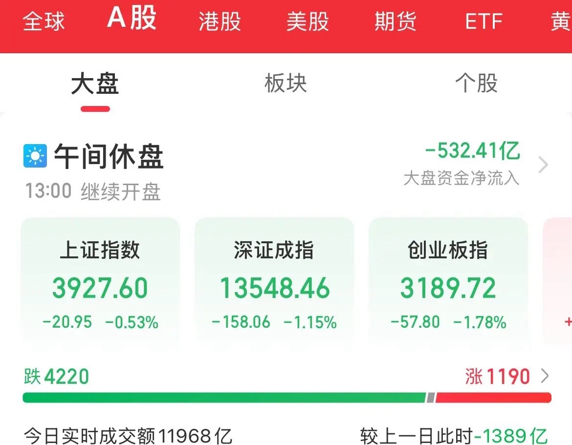 血洗!内资疯狂卖出500多亿,指数全线下挫,创业板跌幅1.78%,昨天怎么涨,今天就得怎么还回去!涨一天齁一天,创新药、生物医药逆势上涨