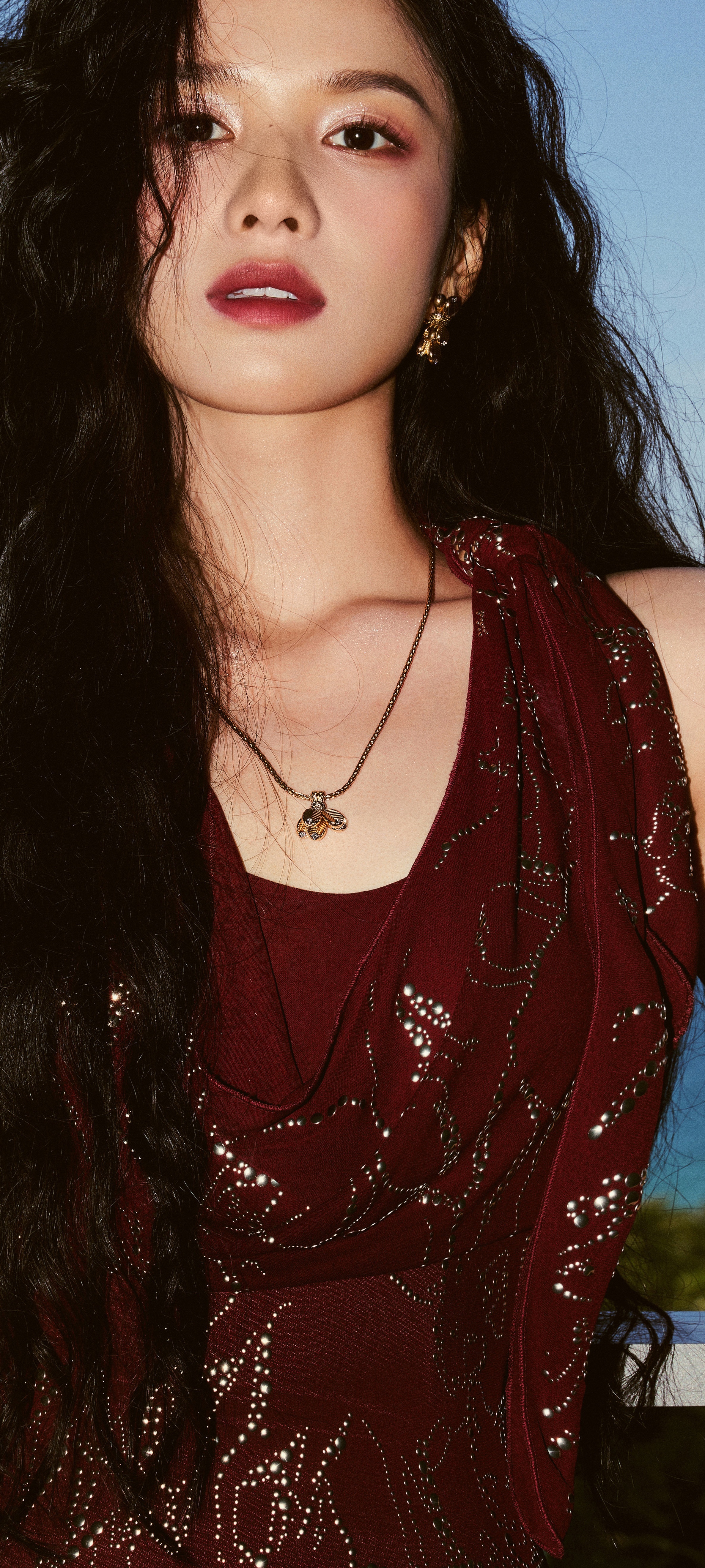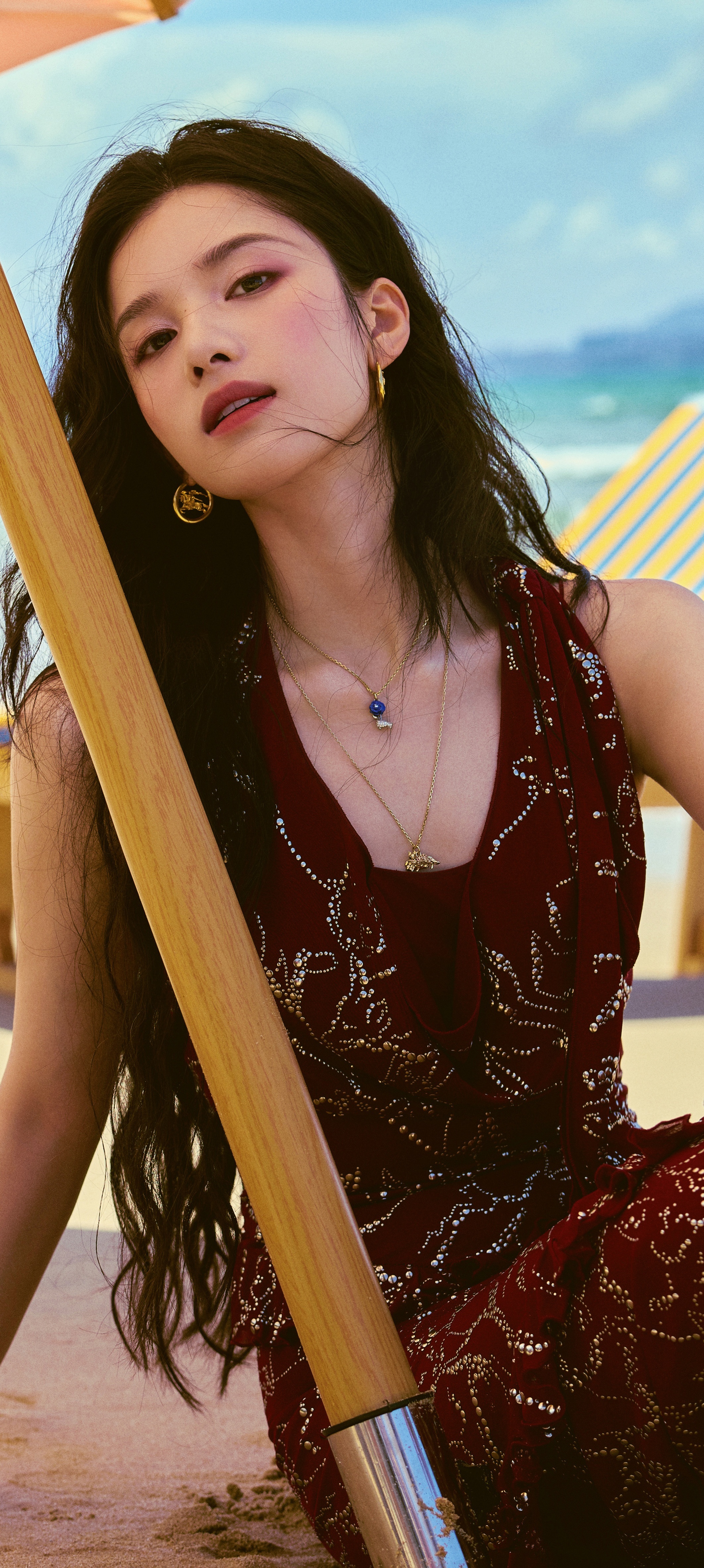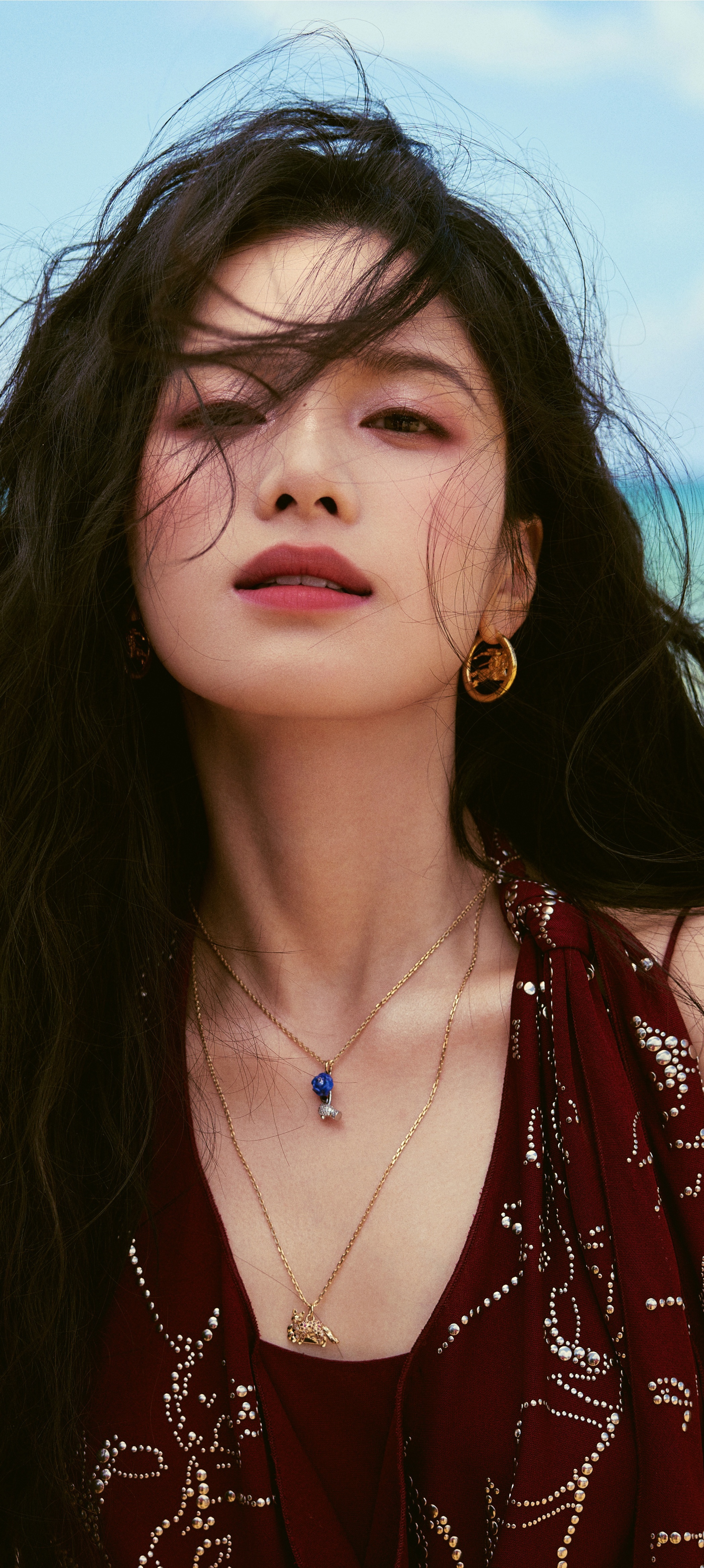 张婧仪高清手机全屏壁纸,海边红裙,盛夏假日开启!张婧仪