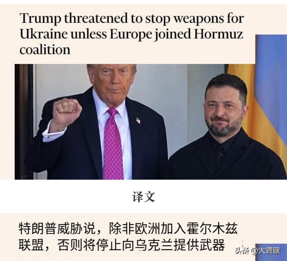 【特朗普对欧洲失望,美国考虑断掉乌克兰军援】 据外媒消息,美国正在考虑中断对乌克兰的军事援助,以迫使欧洲国家加入霍尔木兹海峡的护航行动。 此前,美国希望北约国家能够派遣兵力组建霍尔木兹海峡护航编队,可是响应者寥寥无几,这让美国很伤心。 目前,美国不仅要认真考虑退出北约联盟,还威胁断供军援,对欧洲国家、特别是乌克兰都不是一个好消息。