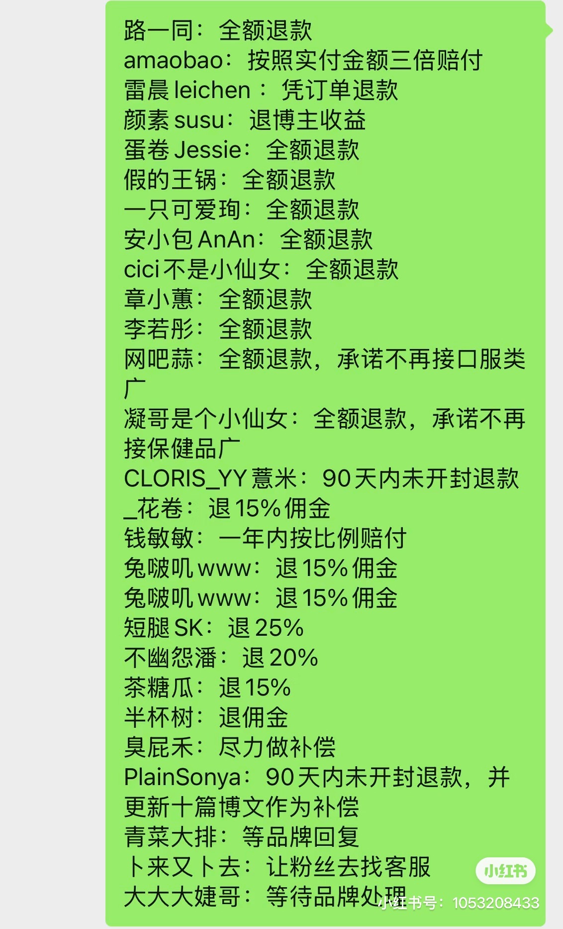 开团优思益各大博主的赔付方案出来了侯小西和夏诗文 感觉最用心Cr:网络