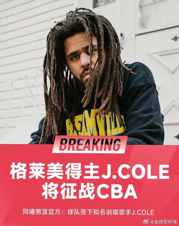 体育 今日据ESPN名记Shams报道,说唱歌手J.Cole与CBA同曦男篮正式签约。
