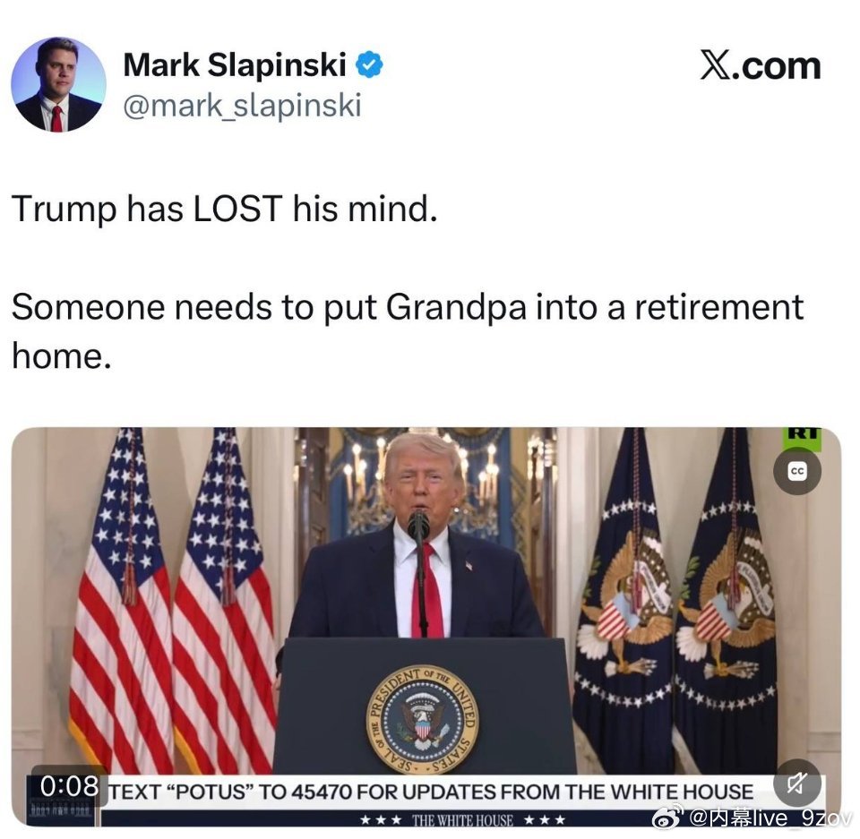 加大拿记者:特朗普已经疯了。应该把这个老头子送进养老院。