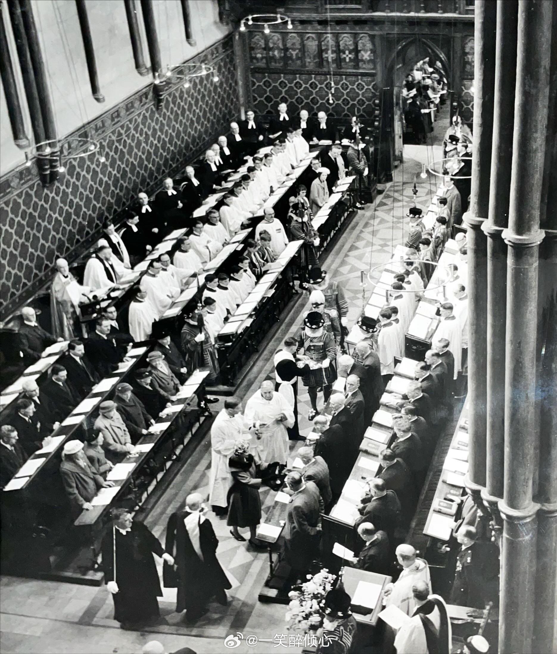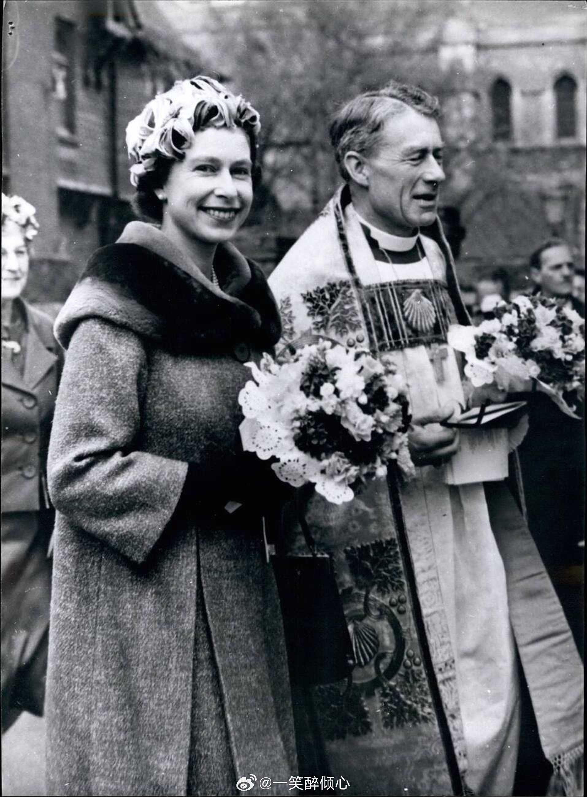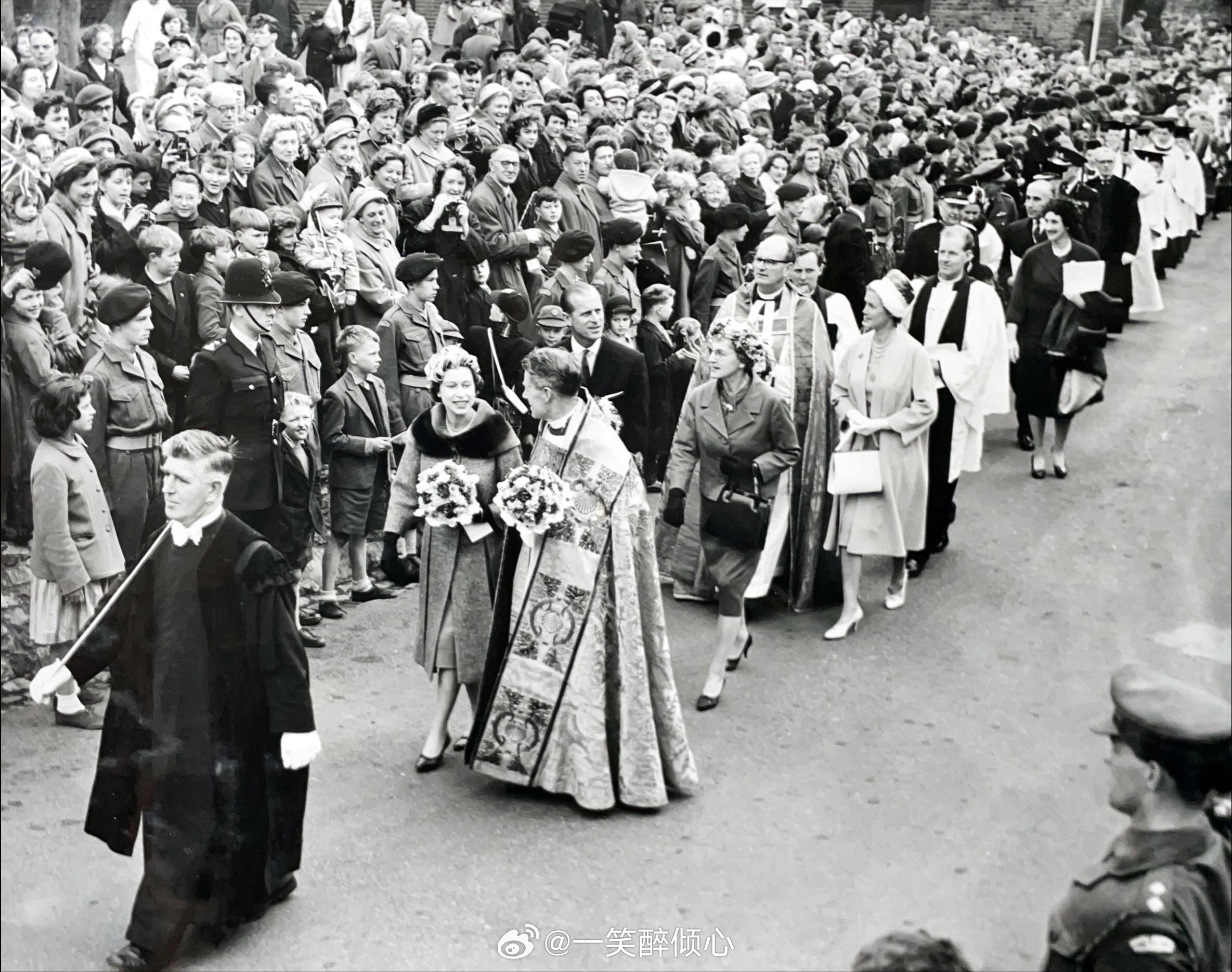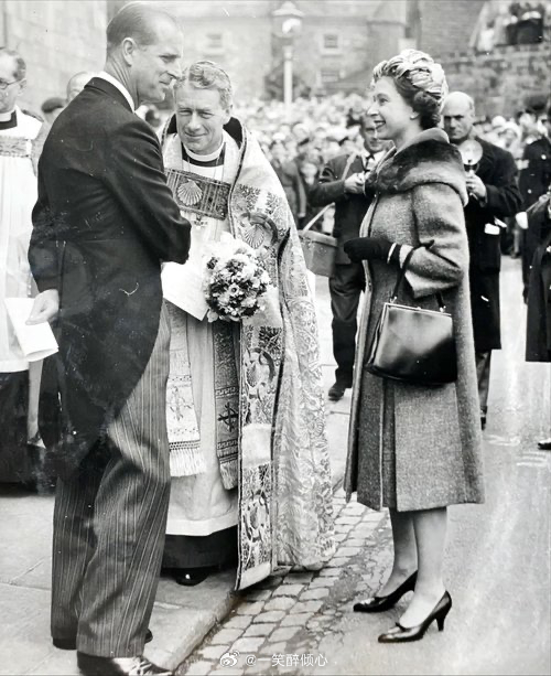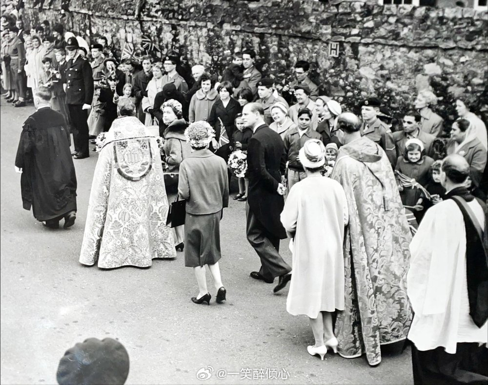1961年3月31日,伊丽莎白二世女王和爱丁堡公爵菲利普亲王在罗切斯特大教堂参加一年一度皇家濯足节(Royal Maundy)⛪