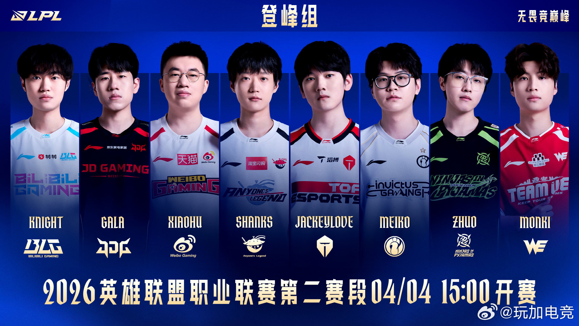 沙场亮剑竞锋芒,巅峰鏖战定豪强。诸强集结,战意昂扬。2026LPL第二赛段将于4月4日正式开赛,逐鹿赛场,突围争锋,无畏竞巅峰!