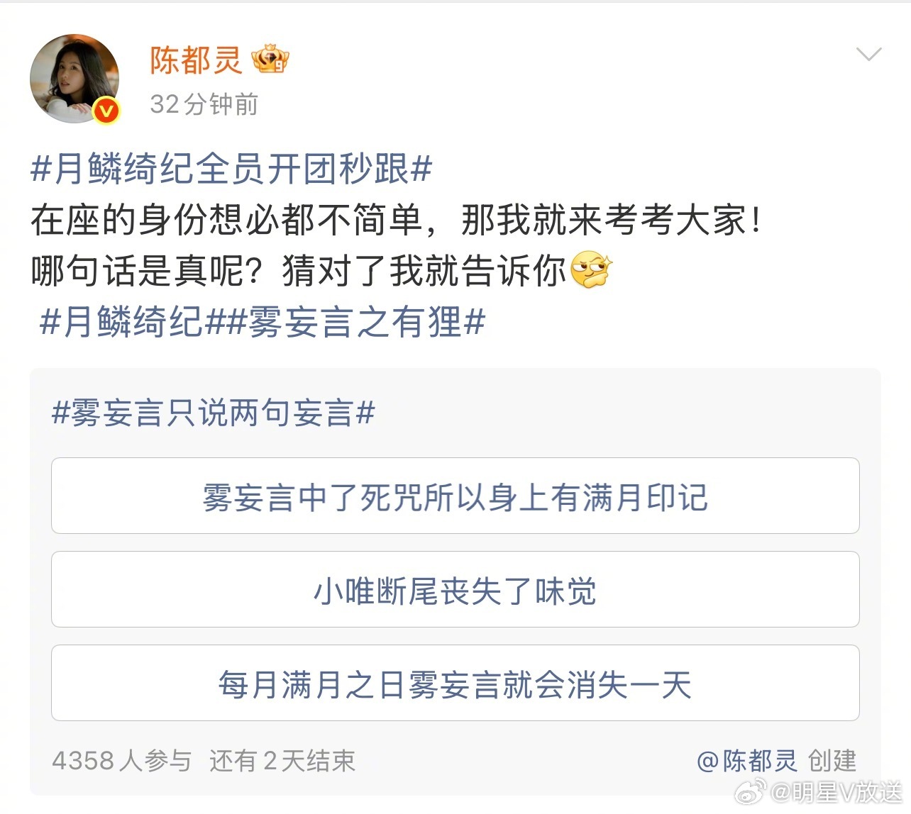 陈都灵让大家猜哪句话是真的 本追剧er轻而易举打出来了,看看是谁还没听雾妄言的话乖乖去追剧,给美丽又让人安全感十足雾姐打call!陈都灵给剧粉上难度了