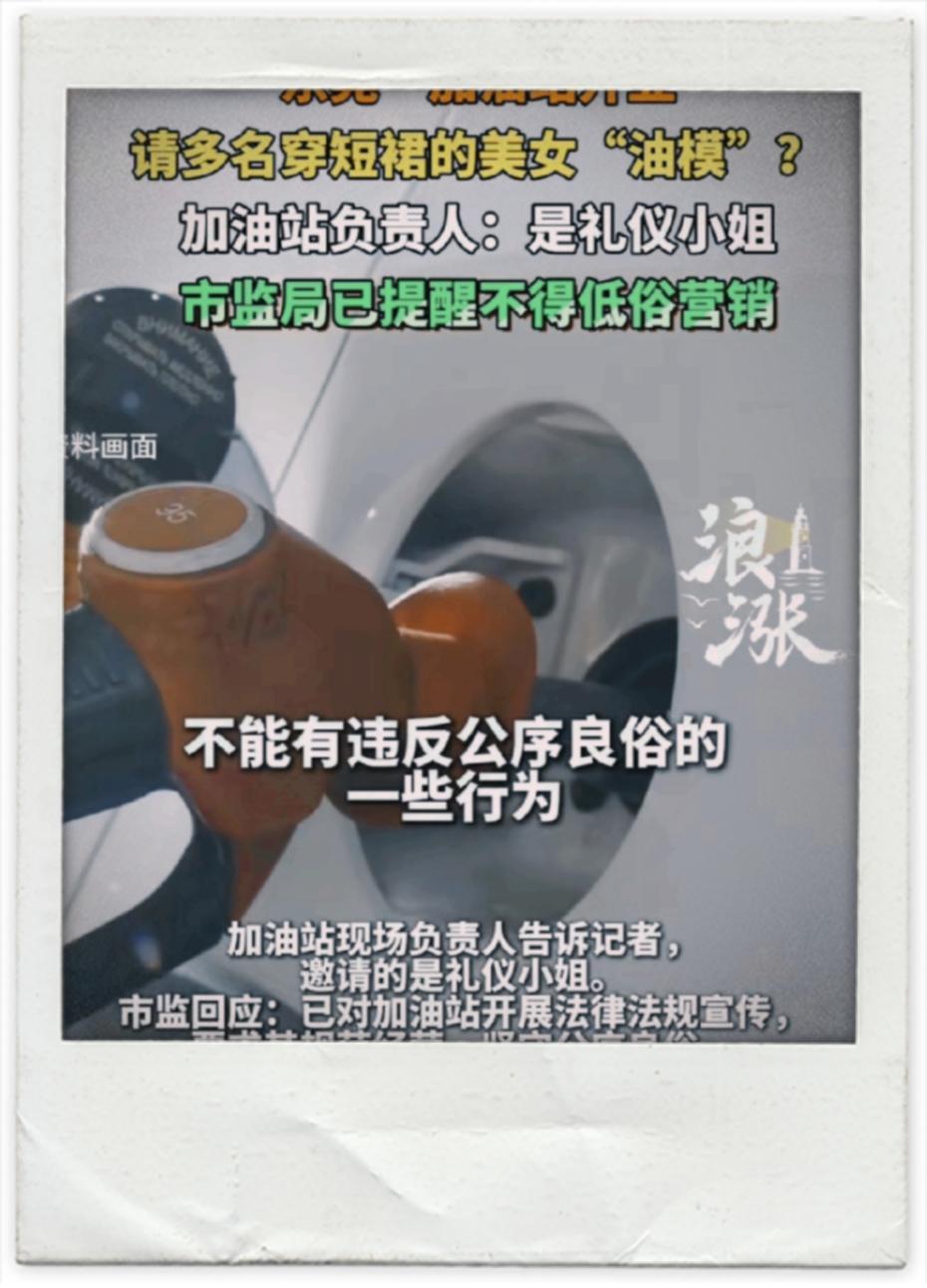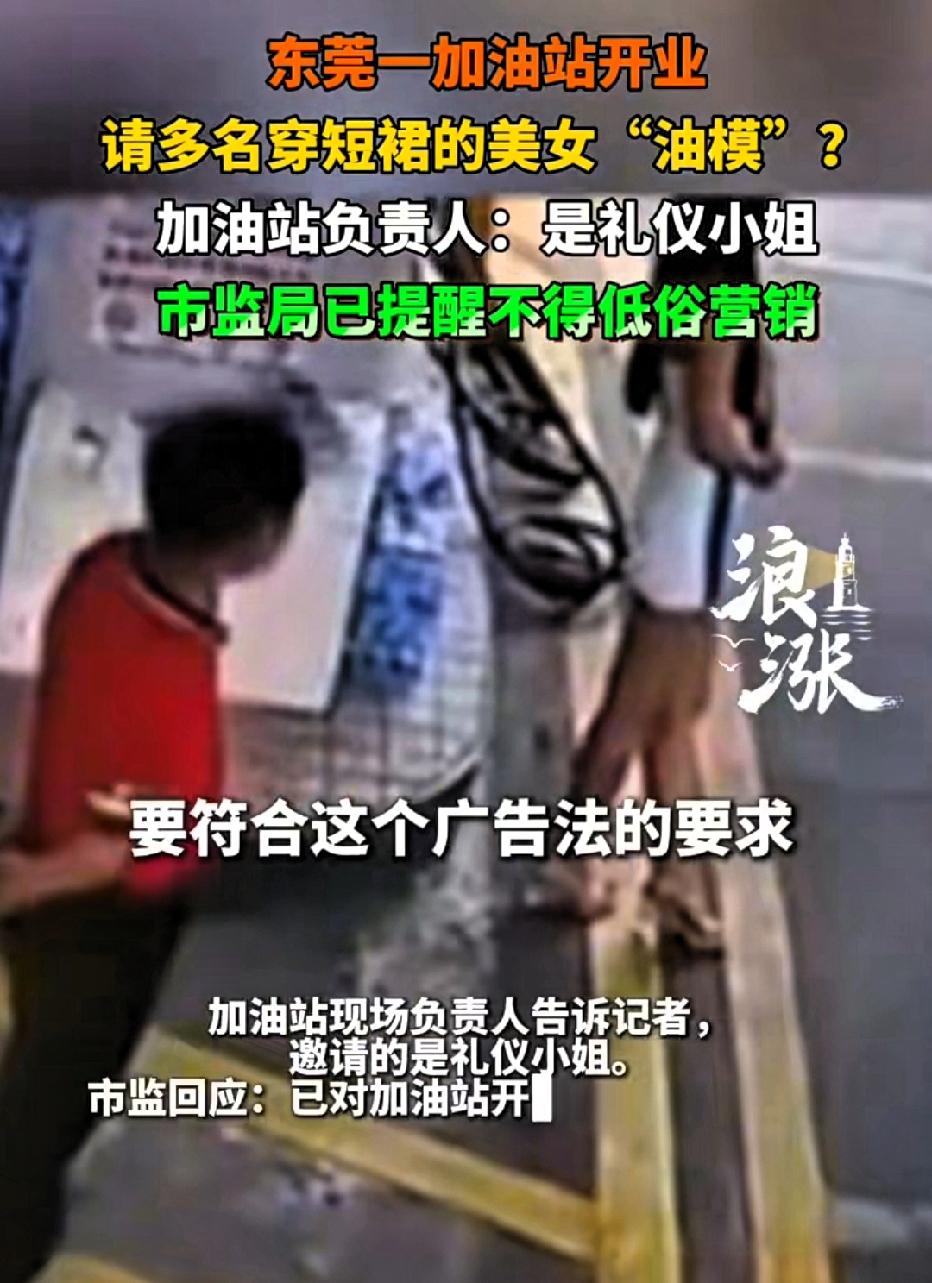 近日广东东莞,一加油站开业,竟请来多名穿短裙的美女当“油模”!负责人辩解:这是礼仪小姐!市监局:不得低俗营销! 加油站开业现场,几名年轻女子穿着短裙站在加油机旁,摆出各种姿势,引来不少人围观拍照。有顾客拍下视频发到网上,质疑这是在打擦边球。 负责人回应称,她们只是礼仪小姐,负责引导和接待。但市监局很快介入,明确提醒:后续不能有这种情况发生,不得进行低俗营销。 网友看完笑了:加油还是加“油”?还有人说:以后去加油站得看是92、95还是美女?你见过这种奇葩的营销方式吗?