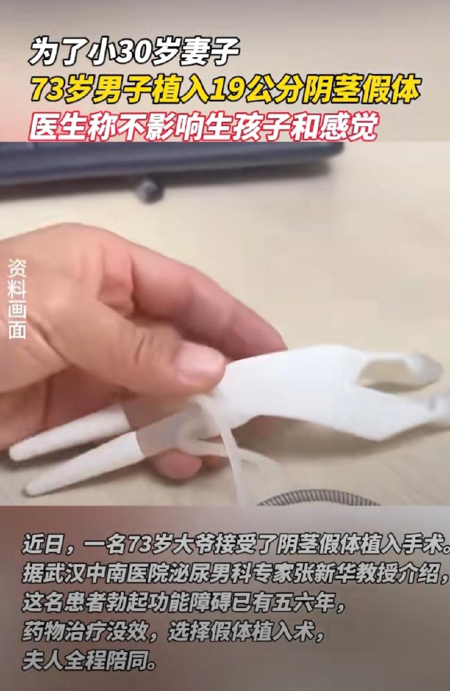 大爷果然是大爷!湖北武汉,73岁的大爷娶了比他小30岁的妻子,无奈大爷患有勃起功能障碍,为了妻子的幸福,他到医院植入了19公分的阴茎假体。医生:阴茎假体不会影响感觉,更不会影响生育能力,保养好的话可以使用十年以上。 73岁的张大爷是武汉本地人,身子骨虽说不算特别硬朗,但心里一直装着一份难得的浪漫。 五年多前,他认识了比自己小30岁的李阿姨,两人从朋友到知己,再到相伴一生的伴侣,感情好得让周围人都羡慕。 然而,步入老年之后,张大爷在夫妻生活上渐渐感到力不从心。 起初他还能靠药物维持,但效果一年不如一年,那种“有心无力”的挫败感,让他心里特别不是滋味。 他私下里常常感到愧疚,自己年纪大了,给不了伴侣应有的幸福,是不是太自私了? 李阿姨看出了他的心事,总是安慰他,两个人在一起,不只是为了这个,有你陪着我就很好了。 可李阿姨越是体贴,张大爷心里越堵得慌,他不想让妻子委屈,更不想让这段婚姻留下遗憾。 纠结了大半年,他终于鼓起勇气去医院咨询。 医生听完情况后耐心解释,说像他这种程度的勃起功能障碍,药物已经不太适用了,可以考虑植入阴茎假体手术。 更重要的是,这种手术不影响感觉,也不影响生育,只要保养好,用个十年以上都没问题。 张大爷回家后琢磨了好几天,毕竟是“动刀”的事情,他年纪大了,多少有些担心。 好在,妻子李阿姨承诺全程陪着他,这才让他感觉到信任和依赖,彻底下定决心。 到了手术当天,李阿姨一直陪在术前等候区,让张大爷心里暖暖的,缓解了对手术的紧张,也有对未来的期盼。 手术很顺利,医生告诉他们,19厘米的假体植入得很成功,只要按照日常保养,用个十年八年完全没问题。 张大爷听到这才舒了一口气,心里那块压了很久的石头终于落了地。 原来幸福并不是一定要多年轻、多健康,而是愿意为彼此迈出那一步。 张大爷心里很清楚,这次手术不是为了证明什么,而是为了兑现一个陪伴一生的承诺。 两人往后的日子还长,他希望自己能再陪她走一程,让这份晚来的爱,变得更完整、更踏实。 《民法典》第一千二百一十九条规定:医务人员在诊疗活动中应当向患者说明病情和医疗措施。 需要实施手术、特殊检查、特殊治疗的,医务人员应当及时向患者具体说明医疗风险、替代医疗方案等情况,并取得其明确同意。 张大爷73岁,具备完全民事行为能力,其勃起功能障碍药物无效,医院建议假体植入手术,符合诊疗规范。 医生已告知手术风险、效果、使用年限等,大爷在妻子陪同下自愿决定、明确同意,知情同意程序合法。 张大爷与小30岁妻子的婚姻受法律保护 ,老年人同样享有性健康与婚姻亲密关系的权利。 手术属于自愿维护婚姻质量、改善生活质量,不违反法律与公序良俗,只要医院无医疗过错,该手术与决定均合法有效。
