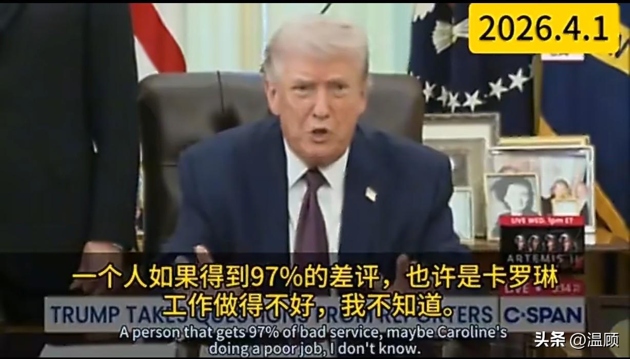 特朗普公开甩锅白宫发言人卡罗琳,直言自己93%-97%的新闻都是负面,全是发言人工作太差,甚至当众调侃要不要开除她,最后又改口留用。 这位史上最年轻的白宫发言人,长期替特朗普扛下媒体围攻,为他的激进言论、贸易战、中东强硬表态反复圆场,全程忠心挡枪。结果特朗普自己频频放出争议言论,搅动全球局势,搞出一堆烂摊子要下属收拾,出了问题第一时间甩锅,从不反思自身问题,典型的利己甩锅式管理,格局属实有限。