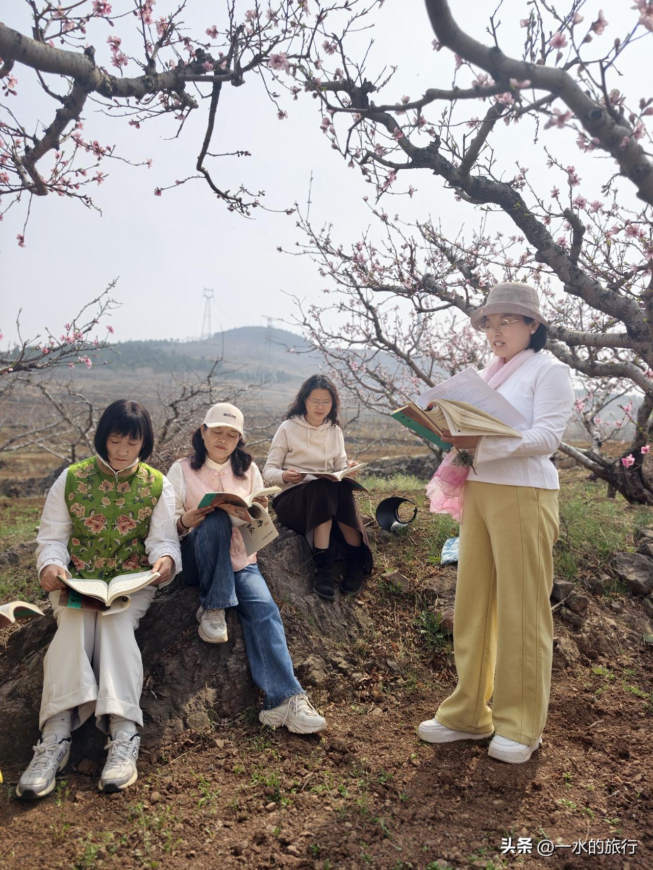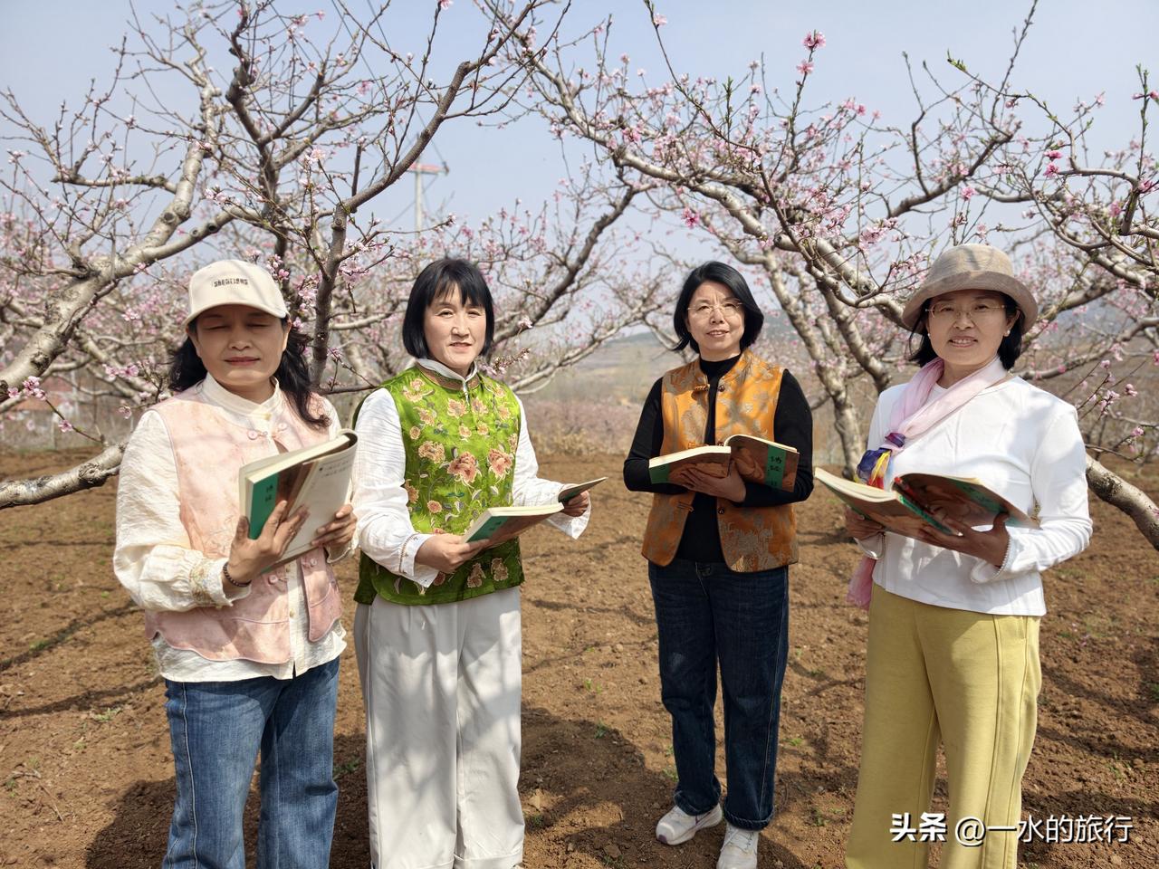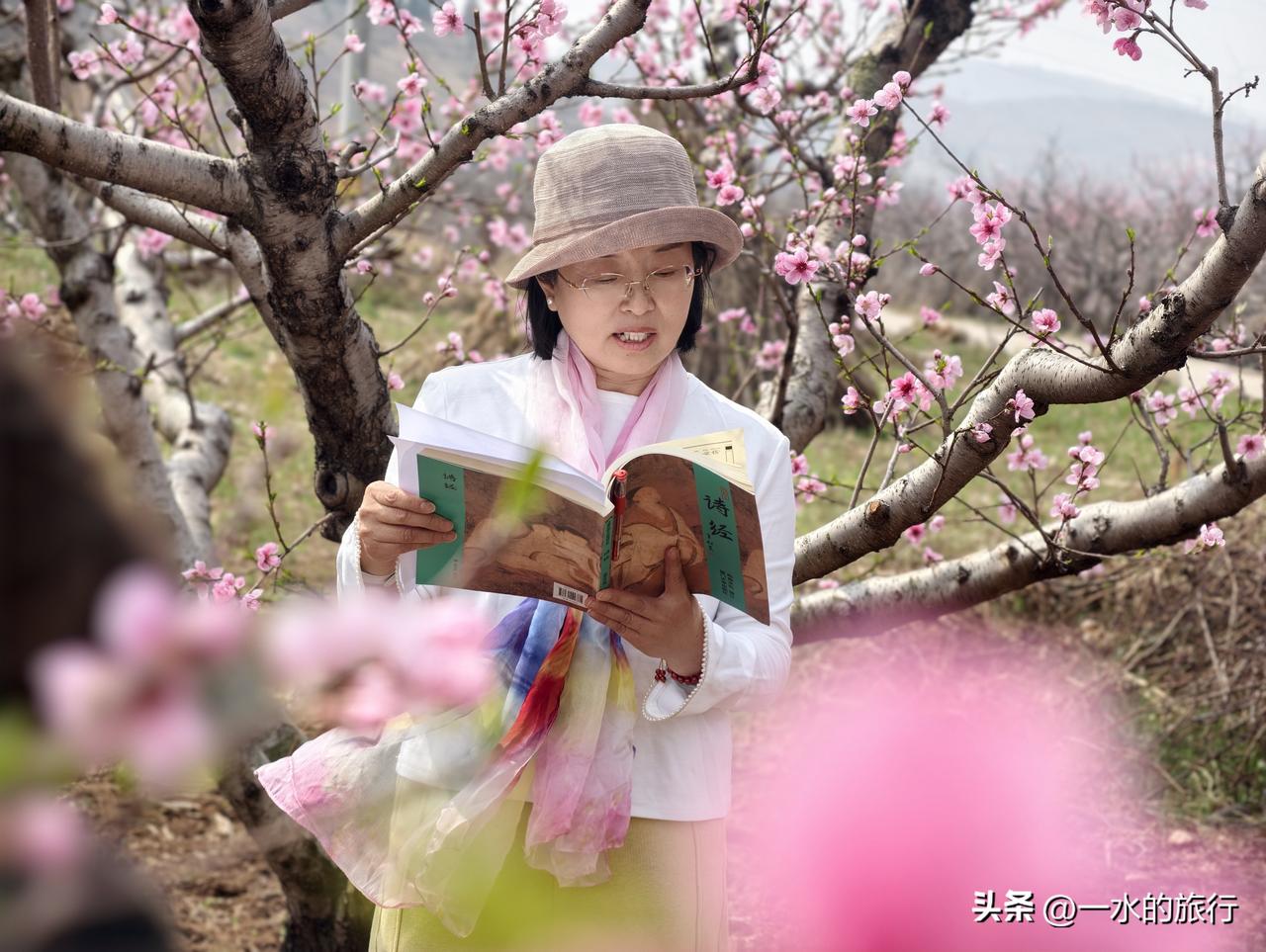 这次安丘天路自驾游,计划先到辉渠获鹿山前村寻找中草药,后在桃林中朗诵《诗经 采蘩》,中午在小麦峪午餐,餐后游古村,最后沿天路,来到齐鲁桃海赏桃花。 第一站:获鹿山前识百草 早8点,自安丘集合,2车10人小分队出发,来到了百泉之乡辉渠获鹿山前村。这个小山村山清水秀,有李左车获鹿的传说,获鹿山谷、半亩山塘、山谷农舍等众多网红打卡点,都在这里,可谓风景秀丽。 大家欢声笑语,来到村东的山坡上。这里层层叠叠的梯田,错落有致。杏花已落,桃花正在怒放。地堰边、桃林下、石缝间,黄的、红的、紫的花儿,迎风摇曳。 董老师带领大家,一边走一边讲,认识田野中的各类中草药。如地黄、白蒿、紫叶地丁、鸦葱、老宫花、兔参、大蓟、米布袋、野蒜等10多种,没想到,这个地方的田野,竟然生长着这么多种中草药。 第二站:桃花源里诵诗经 山间寻百草,大家收获满满。我们移步至烂漫桃林,开启跨越千年的诗词对话,书友们诵读诗经《召南·采蘩》里藏着的中药密码。 桃花漫山,灼灼其华。书友们在花海中读诗经,诵《桃夭》,诗书与桃花美景相融,传统文化与自然之美浑然一体。 安丘游玩 来安丘 安丘市自然风光