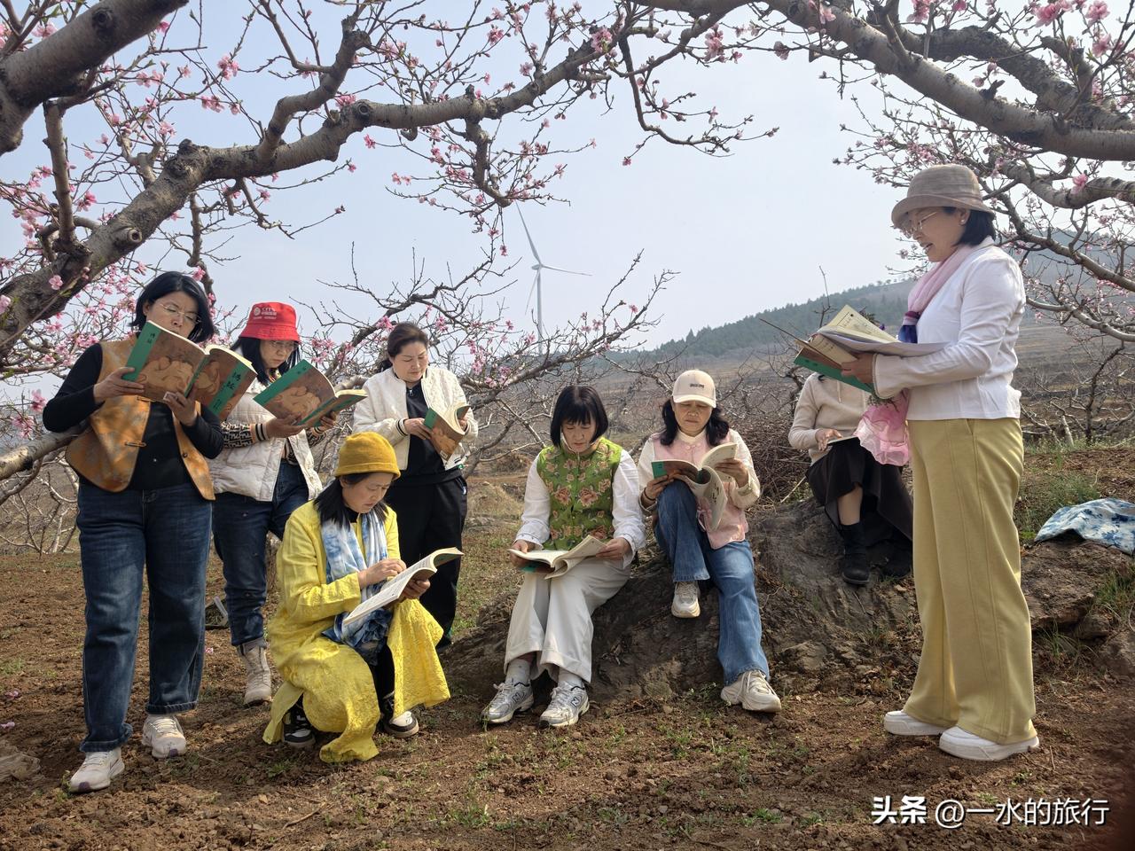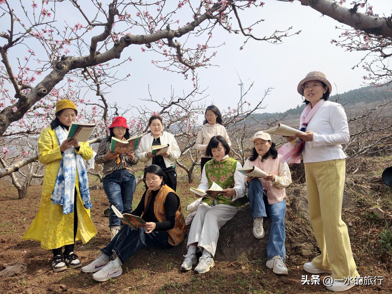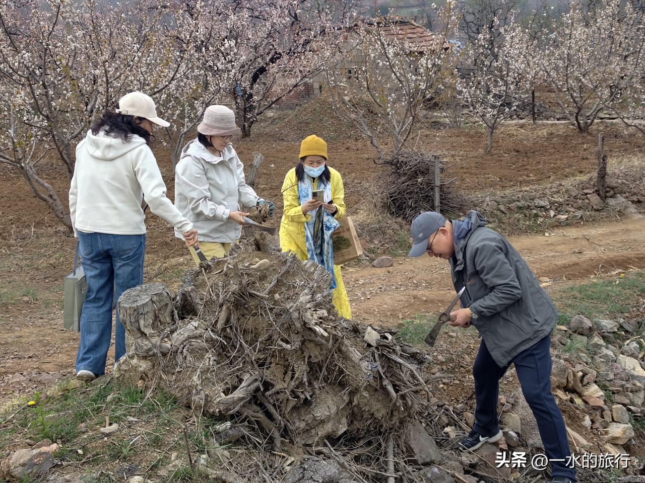 这次安丘天路自驾游,计划先到辉渠获鹿山前村寻找中草药,后在桃林中朗诵《诗经 采蘩》,中午在小麦峪午餐,餐后游古村,最后沿天路,来到齐鲁桃海赏桃花。 第一站:获鹿山前识百草 早8点,自安丘集合,2车10人小分队出发,来到了百泉之乡辉渠获鹿山前村。这个小山村山清水秀,有李左车获鹿的传说,获鹿山谷、半亩山塘、山谷农舍等众多网红打卡点,都在这里,可谓风景秀丽。 大家欢声笑语,来到村东的山坡上。这里层层叠叠的梯田,错落有致。杏花已落,桃花正在怒放。地堰边、桃林下、石缝间,黄的、红的、紫的花儿,迎风摇曳。 董老师带领大家,一边走一边讲,认识田野中的各类中草药。如地黄、白蒿、紫叶地丁、鸦葱、老宫花、兔参、大蓟、米布袋、野蒜等10多种,没想到,这个地方的田野,竟然生长着这么多种中草药。 第二站:桃花源里诵诗经 山间寻百草,大家收获满满。我们移步至烂漫桃林,开启跨越千年的诗词对话,书友们诵读诗经《召南·采蘩》里藏着的中药密码。 桃花漫山,灼灼其华。书友们在花海中读诗经,诵《桃夭》,诗书与桃花美景相融,传统文化与自然之美浑然一体。 安丘游玩 来安丘 安丘市自然风光