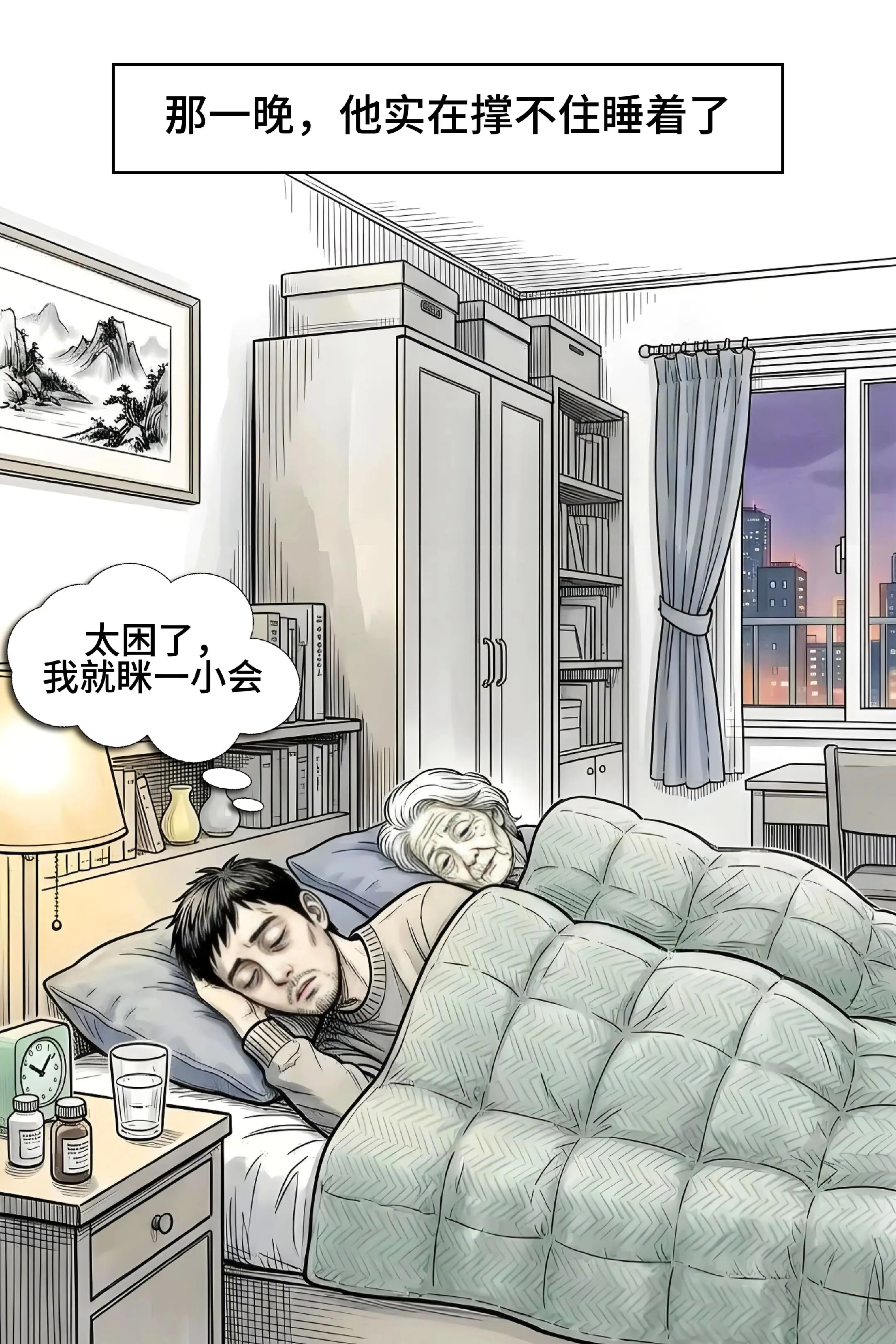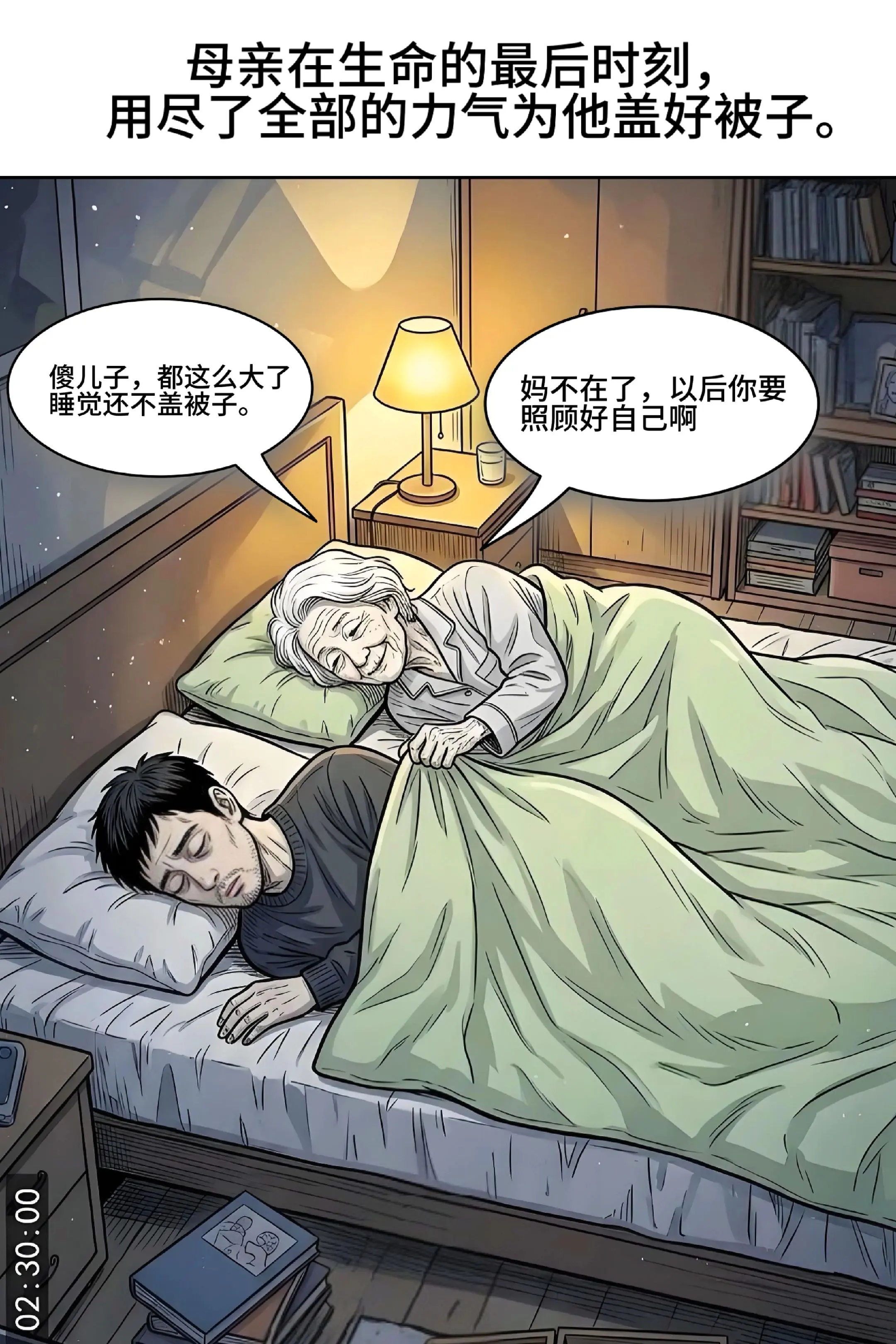 "妈妈再给你盖一次被子,像刚出生时一样."