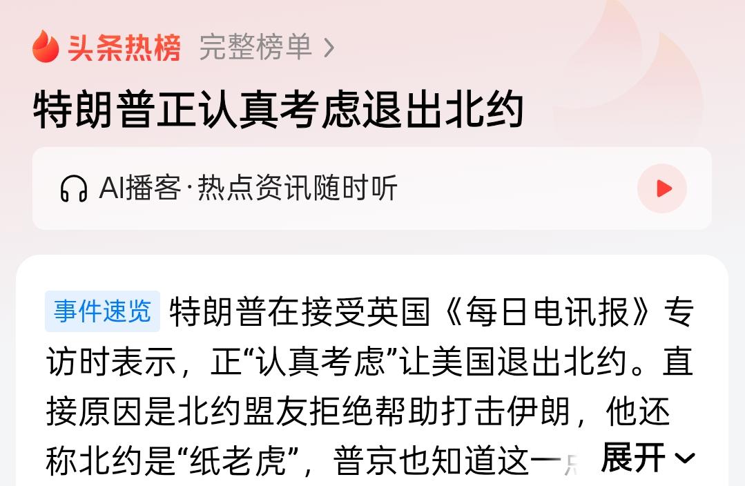 北约真的过分了,老大有困难,一众小弟居然一点忙都不帮,不帮也就算了,连军事基地借用一下都不行,这破北约必须退马上退。 美国退出之后,北约群龙无首,内部没有任何一个成员国,有实力挑起大梁,这该怎么办,邀请中国加入北约,成立新北约,问题就解决了。 只是这剧情有些太狗血了[不看] 北约新机制