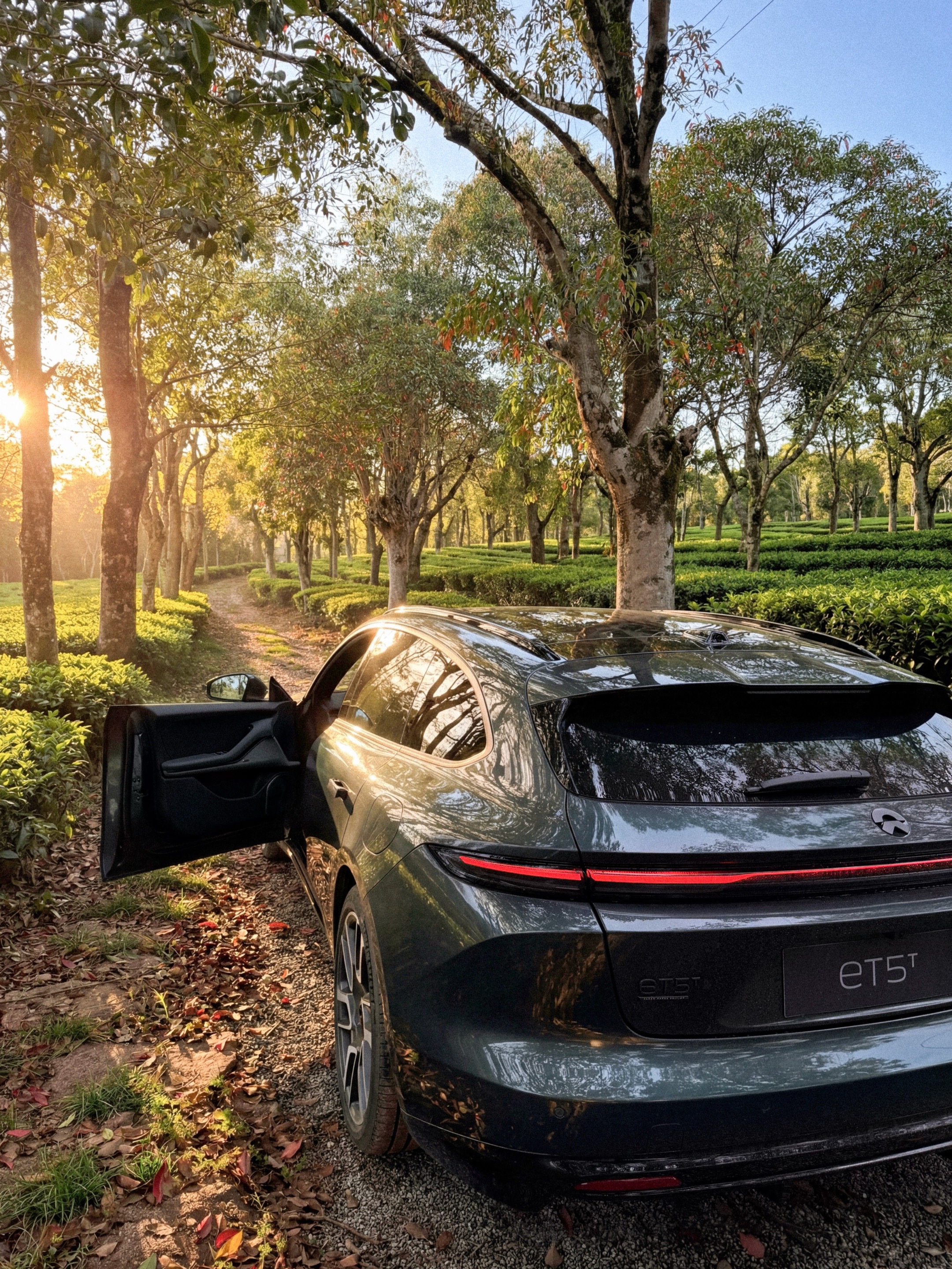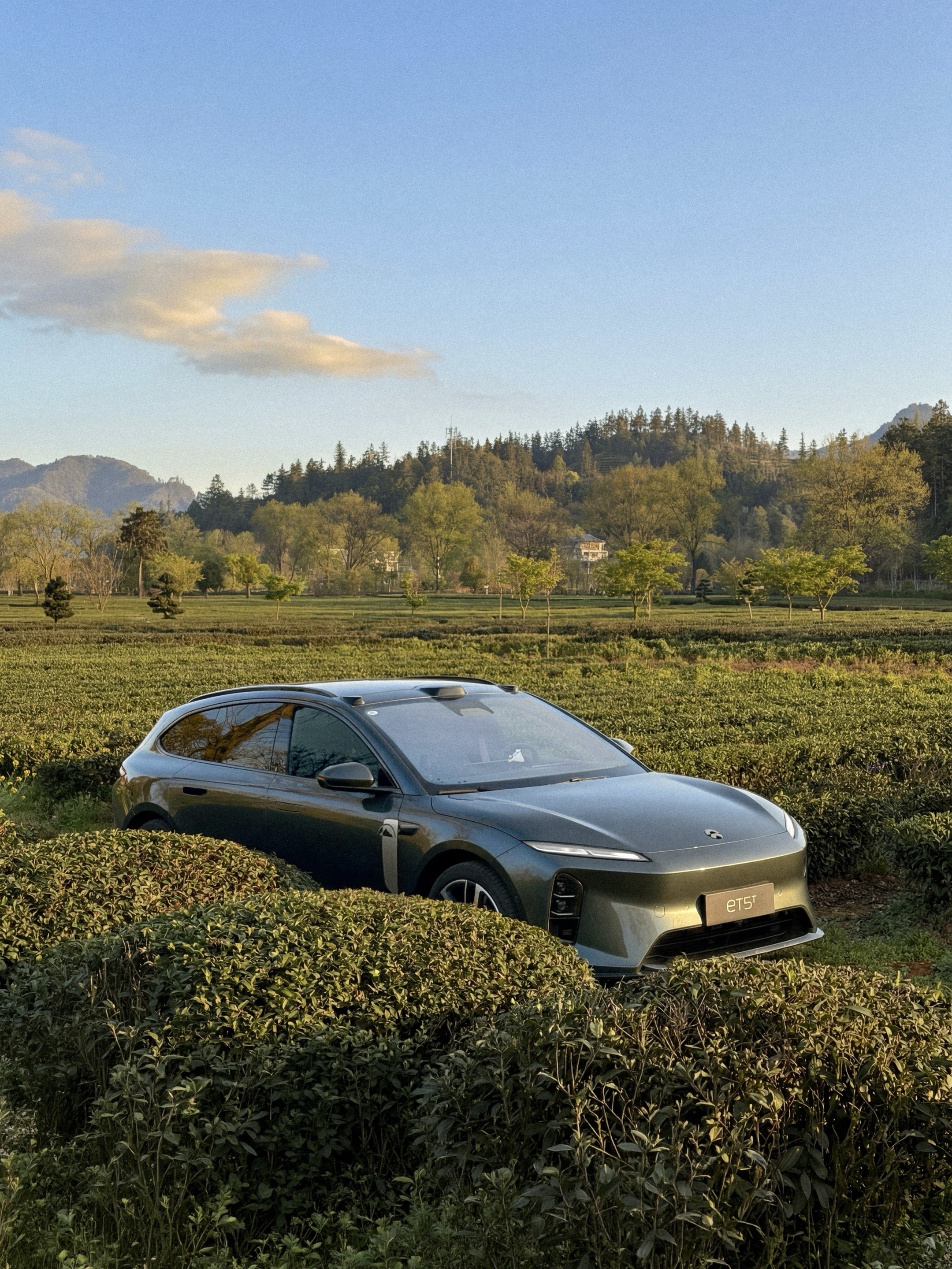 开着ET5T自然奇境版走进武夷山茶园,满眼都是舒服的绿意。 新车色星辰绿这个颜色真的很绝,和整片茶山配在一起,浑然天成,一点都不突兀。Clean Parks的环保理念也很戳我,不打扰这片自然,就好像春天真的顺着车身轻轻流过。