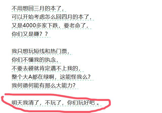 大曾子说不玩了,明天清仓!周四又吃面了,低吸手里的万邦,拉红把昨天底仓T出去不是很爽吗,昨天神剑就已经不行了,今天还去接盘到底是怎么想的。之前已经将神剑卖飞了,就没有回头的必要,主线又不是商业航天,老龙一般都是三板反抽到头了,走独立的除外。其实今天盘面很好分析,竞价封单最强的是医药,这个时候就去低吸核心辨识度的医药股就行了,竞价定方向其实是很有道理的。毕竟前排都已经4连了,而美若华也反包,明天看分歧!