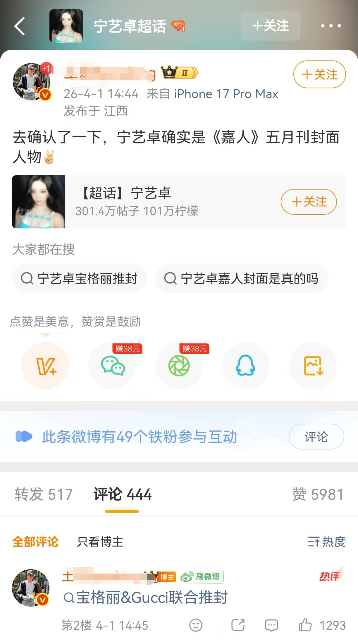 博主爆料宁艺卓tc团队下场还拿下了高奢杂志推封柳智敏金玟庭粉丝好日子要过