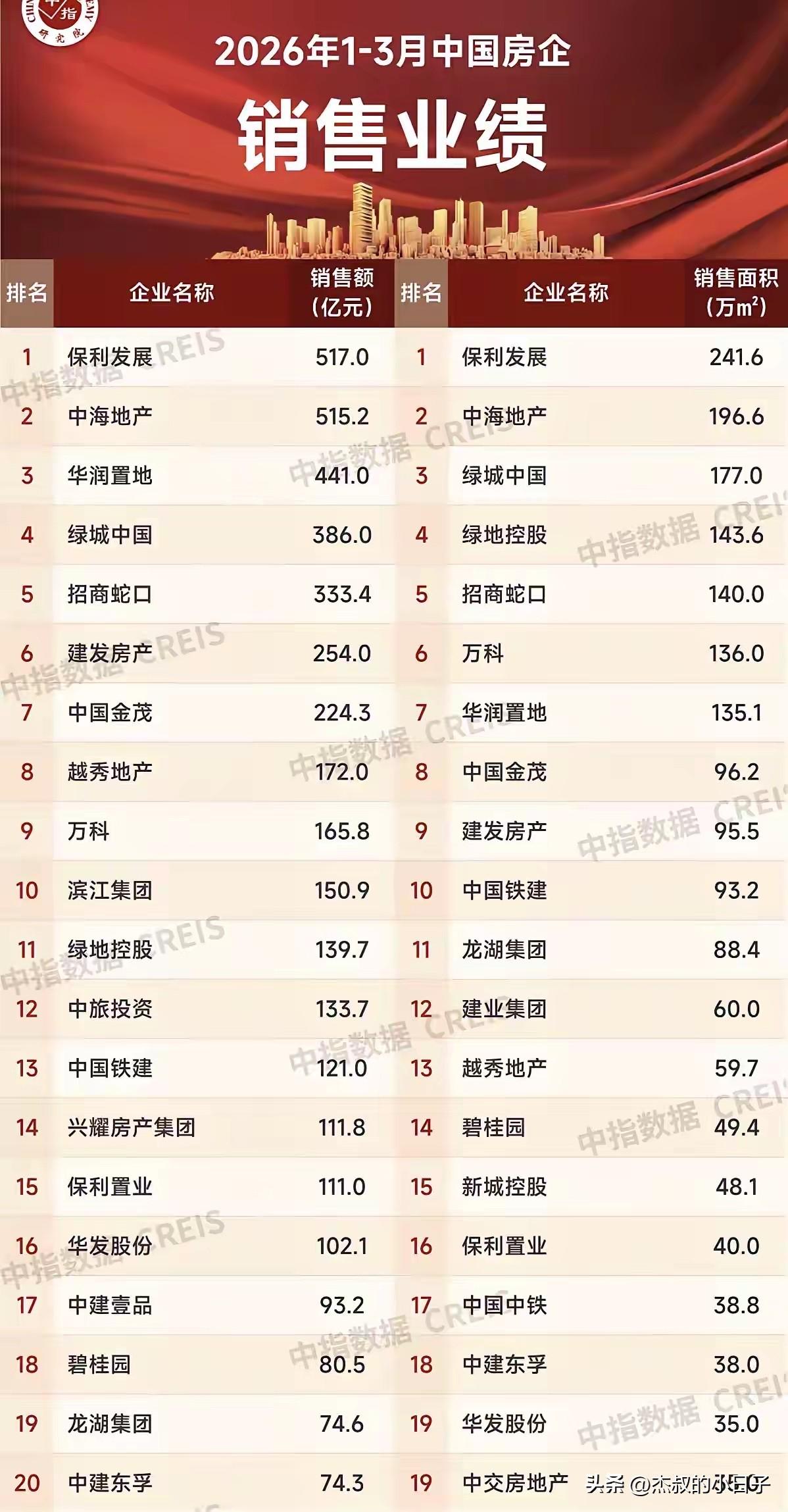 一季度全国百强房企销售名单出炉! 前十除了滨江一家,其余全是国央企! 销售金额也再一次下探,100亿元可以排进百强榜16位! 这要是在20年,21年高峰期,基本上得千亿销售额才能排进前十吧。 现在100多个亿就能进。说明市场销售压力巨大,同时也代表目前整个房地产行业的水平。 所以,如果一家房地产企业一个一月能卖个1个亿,已经算是相当不错了。 前二十。曾经的宇宙第一房企碧桂园也只有80个亿,排名18位,龙湖76亿,排名19位。 当年的地产大咖,纷纷跌落神坛。 “国进民退”,是好事吗?