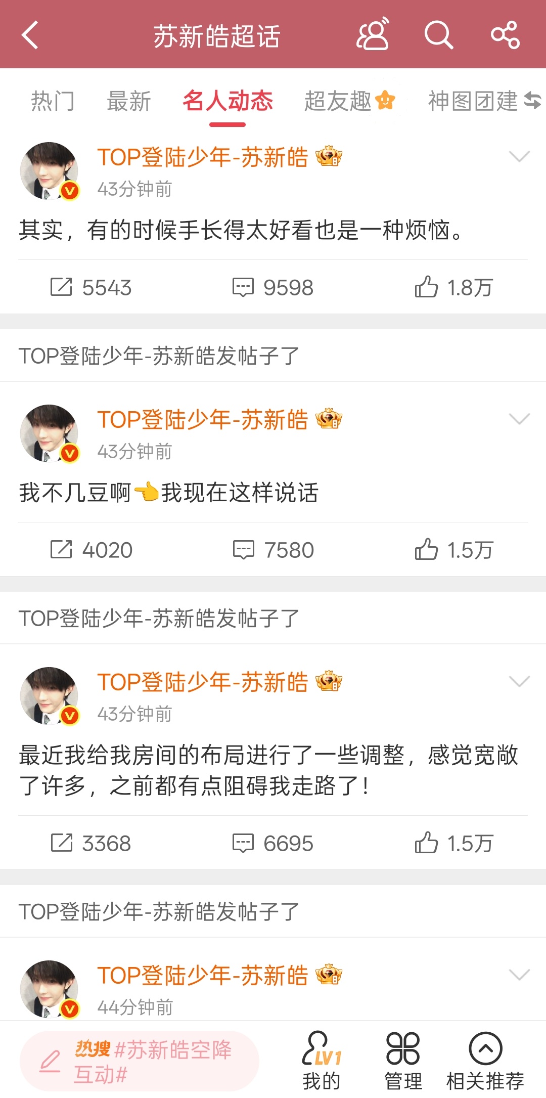 苏新皓空降聊天苏新皓空降发自拍谁家爱豆空降聊天室连课程表都晒啊!苏新皓来啦~备战演唱会的日常:难不啃手(但手好看所以任性),裤子长了要提(走路有点忙),馋炒酸奶,还有一张塞满的课程表。最后不忘发几张自拍收尾,这种唠家常的小苏请多来几次!