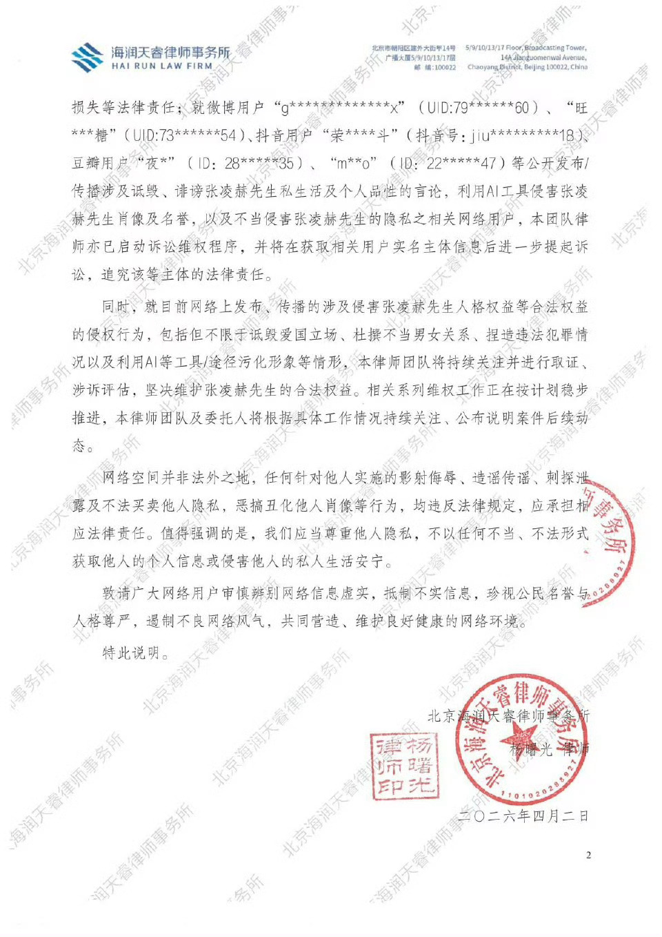张凌赫工作室发布最近维👊🏻声明了