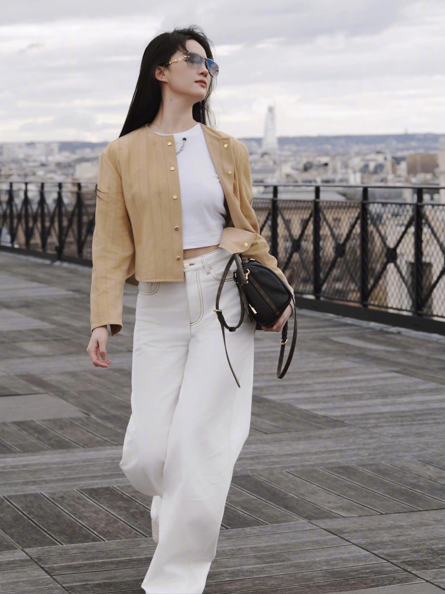 刘亦菲旅行风大片,很清爽的春日气息style。全套出自Louis vuitton。🌸🍃 刘亦菲老钱风大片