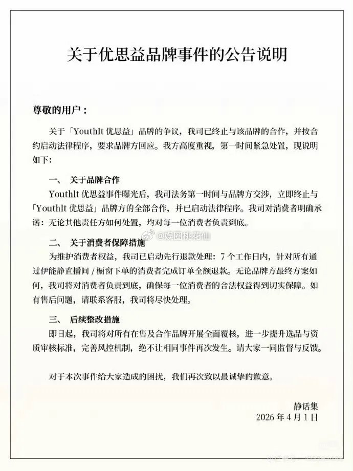 而且,董宇辉的与辉同行、李若彤、伊能静都曾经为该产品代言,与辉同行的销售额在1000万元以上。目前,两位女士已经道歉并承诺退款。