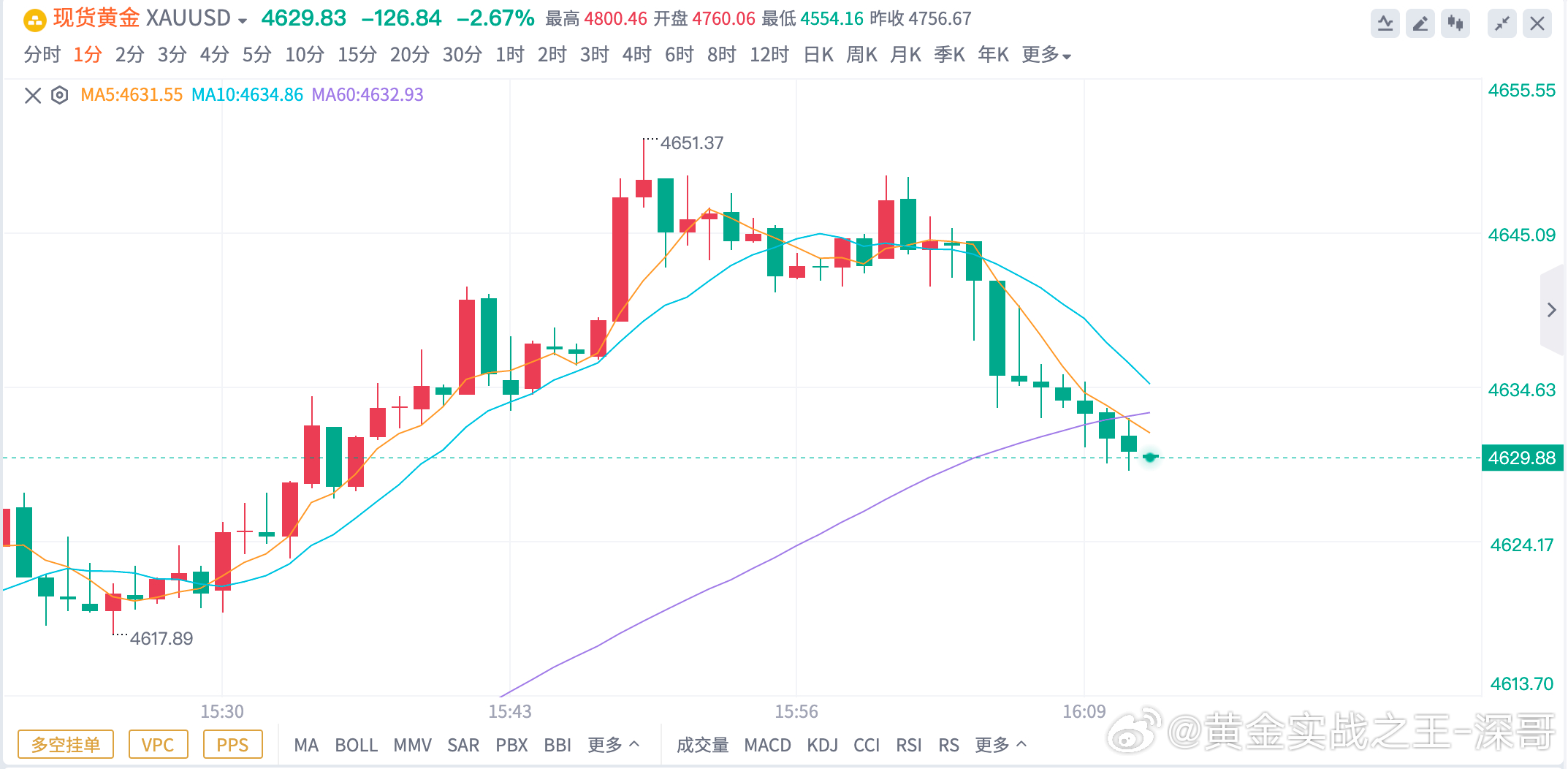 黄金4650提前安排空,抵达4630,瞬秒200点!
