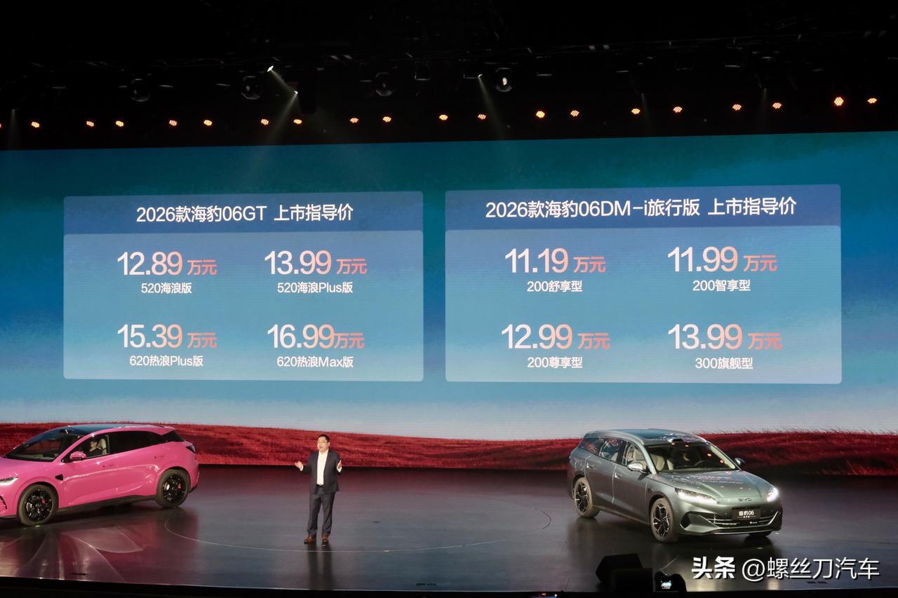 比亚迪海洋网两款新车,2026款海豹06GT和海豹06 DM-i旅行版正式上市,最低11.19万元起售,全系均搭载第二代刀片电池和闪充技术! 与此同时,比亚迪5月1日前将建成首批1000座闪充高速站。虽然主打运动的两厢车和旅行车一直不算主流市场,甚至处于叫好不叫座的境地,希望比亚迪2026款海豹06GT和海豹06 DM-i旅行版这两款车,能够唤起年轻人的购买欲望!大家觉得呢?[灵光一闪]
