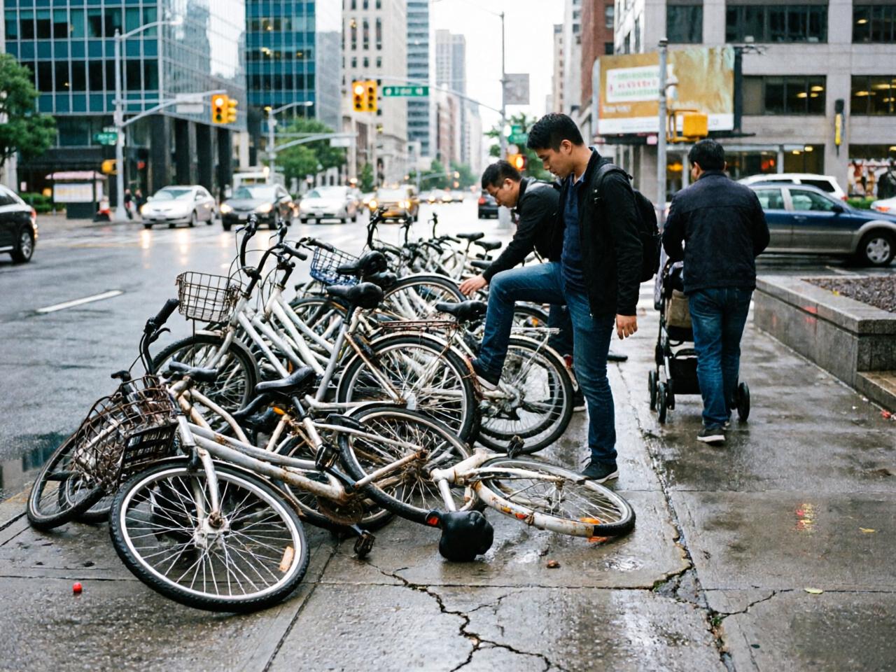 地铁站周边大量共享单车随意停放,影响交通,影响市容