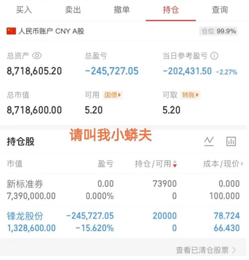 小莽夫被锋龙坑了三次,今天锋龙小红后继续下杀深水,收盘也没起来,搞不太明白,为何一直和锋龙过不去,这么多趋势好票随便买吧,只要拿着不动基本都能赚钱。像锋龙、嘉美这种涨幅太大,基本可以拉黑了。时不时一个反弹其实也是主力在出货吸引韭菜跟风,第二天基本都是低开,其实主力出货不一定是在高位,股价下跌时也是在慢慢出货,毕竟高位一下出不完没人接。这几天高中生也没更新了,估计是亏麻了,比赛成绩都不交,3月行情确实不好做,四月炒业绩,管住手空仓最好