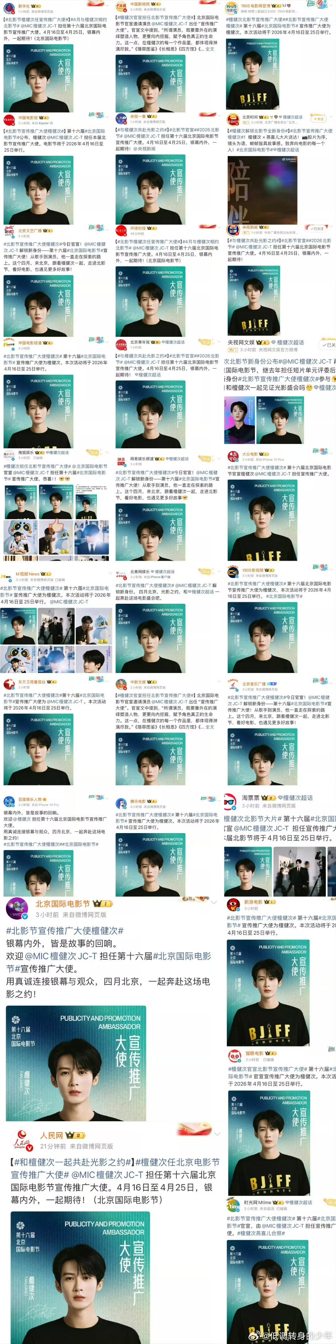 檀健次北影节宣传推广大使檀健次官宣北影节宣传推广大使的含金量好牛,今日官宣多家媒体➕央视官媒助阵❗上一个宣传推广大使还是22年的郭天王这次是首位拿到该title的电影人实力派演员檀健次太争气了~优秀檀健次北影节宣传推广大使