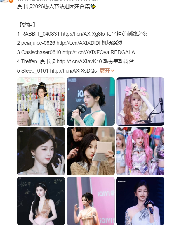 愚人节站姐团建!今年站姐都挺怂的,没什么瓜,往年至少有站姐发杨洋6任绯闻女友,王鸥站姐发杨幂刘恺威,杨颖站姐发陈伟霆等,今年大家都发美图,各家站姐发最多的明星是虞书欣,200多个非粉站姐在发,超过100个的还有白鹿,田曦薇,陈都灵,鞠婧祎,迪丽热巴等,男明星过200的是张凌赫,过100的鹿晗。