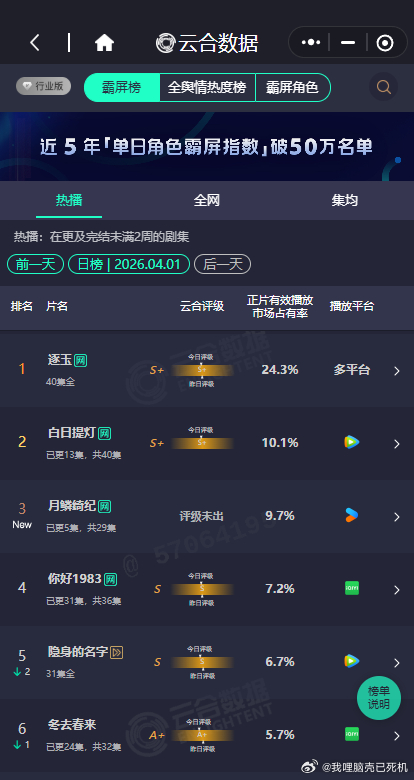 月鳞绮纪的云合月鳞绮纪第三月鳞绮纪第三,月鳞绮纪的云合来啦,首播的云合9.7%,谁懂和这个月鳞绮纪画面和故事节奏的好看程度,稳稳的热度上升中,期待住接下来的故事见啦~月鳞绮纪站内热度破8000