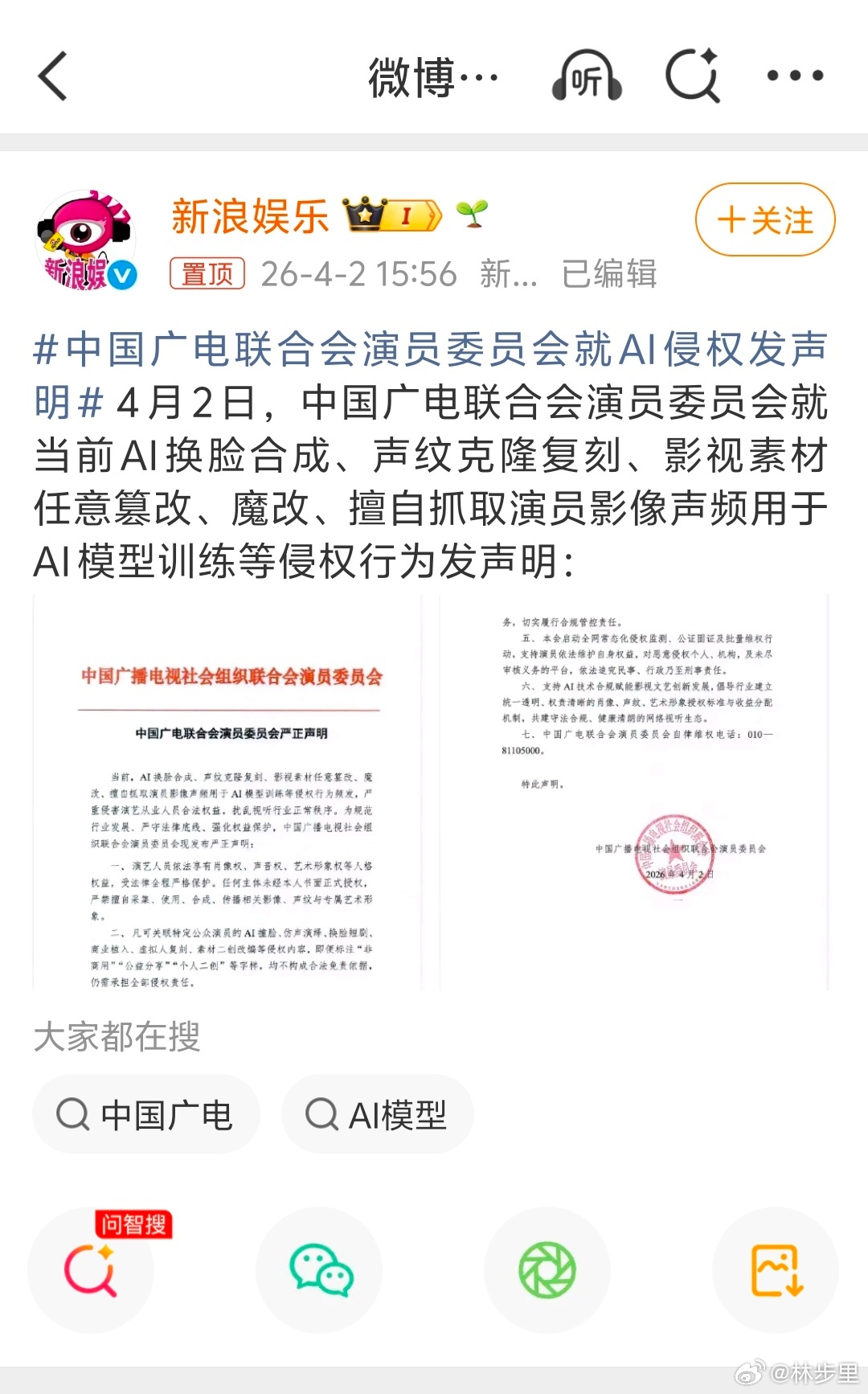 中国广电联合会演员委员会就AI侵权发声明这事得立法,普通人的脸也要保护。