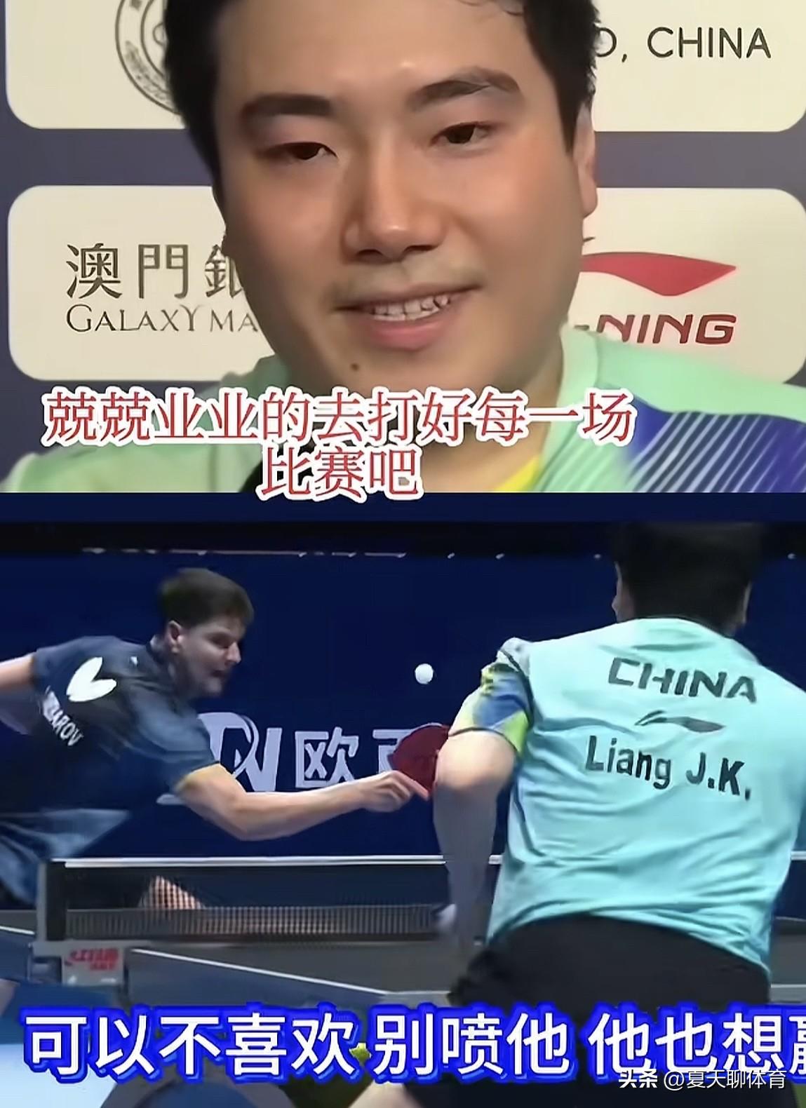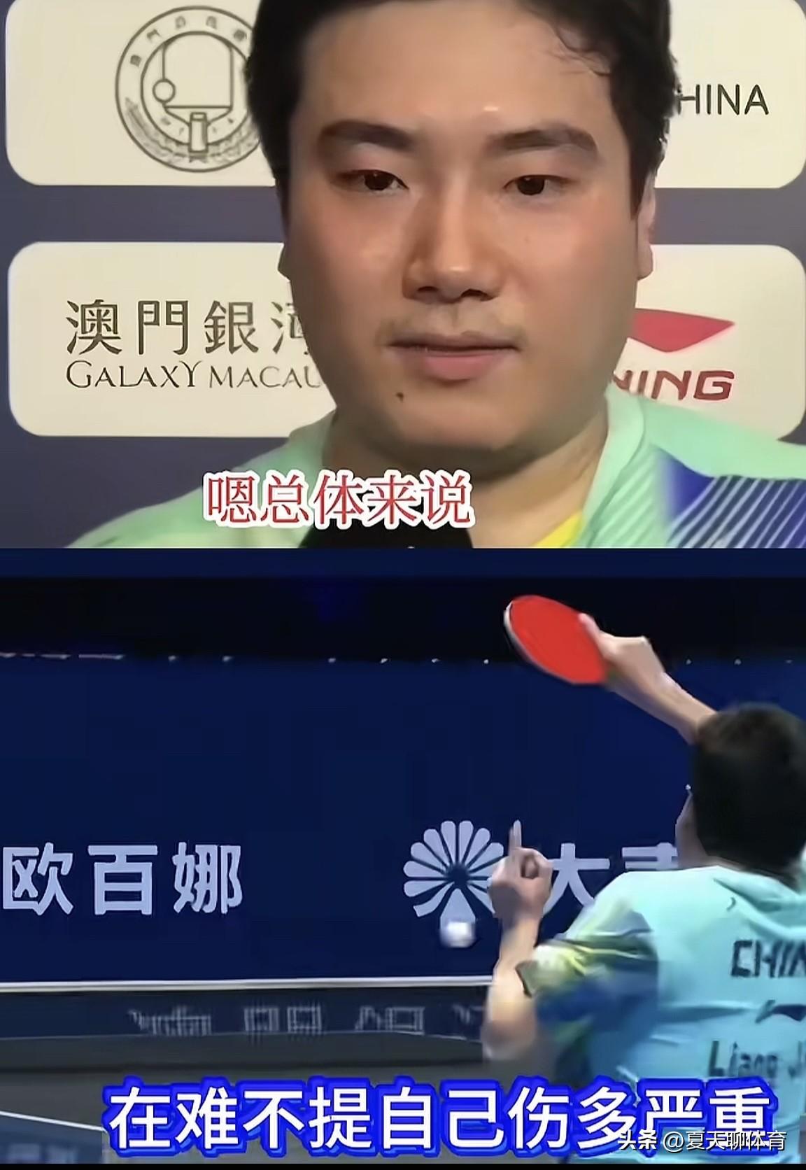 泪目了[流泪][流泪]被梁靖崑的这段采访和挥手示意整破防了!他的这段采访真的是看着哭着[流泪]自己再难,伤病再严重,在采访时也不提自己伤得有多重!我们永远不会忘记去年多哈世锦赛半决赛,你拼了命鏖战7局逆转雨果,在印度男团亚锦赛,决胜盘你削了松岛辉空,拼死赢了日本队,帮助中国队拿了亚锦赛团体冠军!志强教练更懂得大胖的不容易,现在每赢一分,都给他肯定,而不是之前的表现不好就给他脸色看!