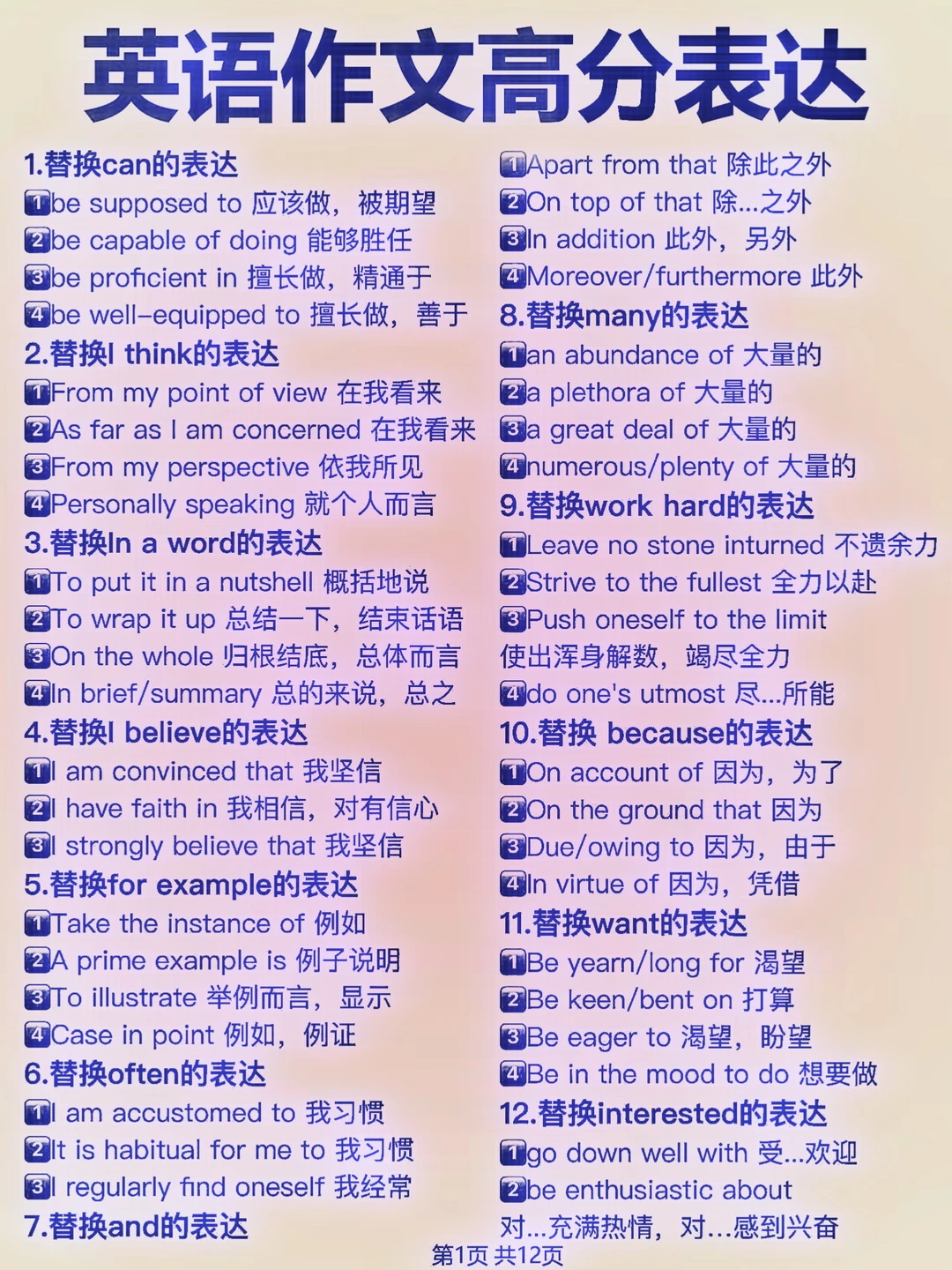 英语作文高级句式!高分英语作文表达合集!