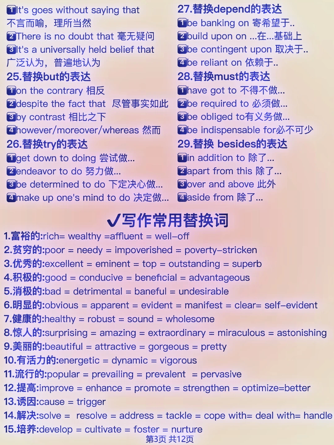 不背后悔系列!英语写作高级替换词!告别词穷