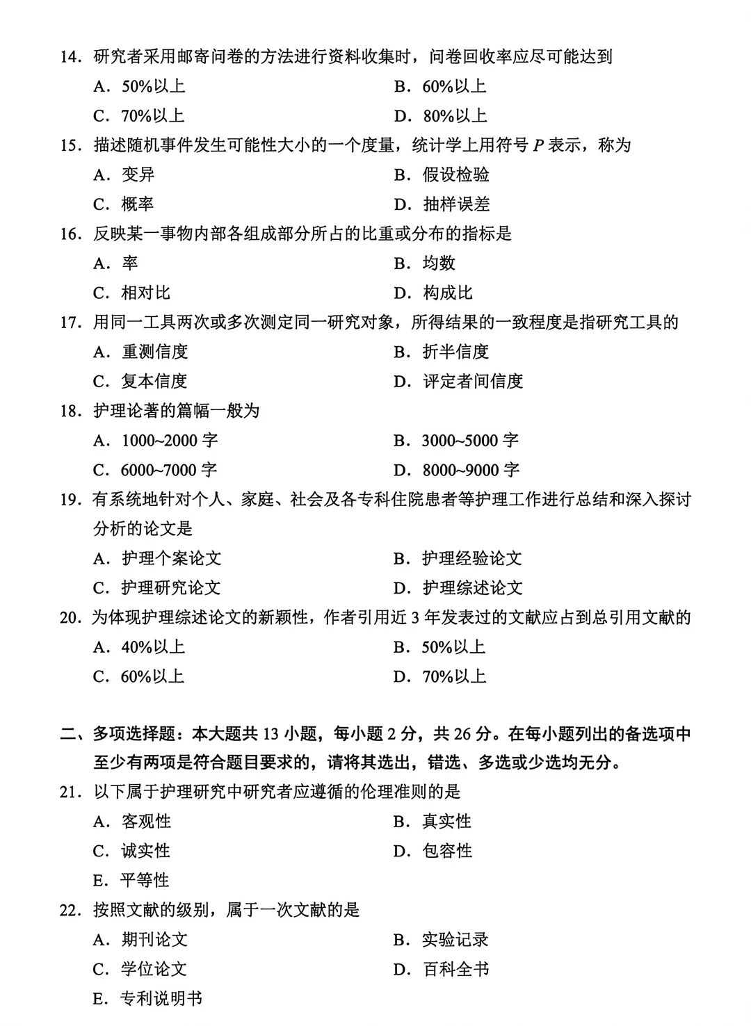03008护理学研究真题及答案汇总🔥