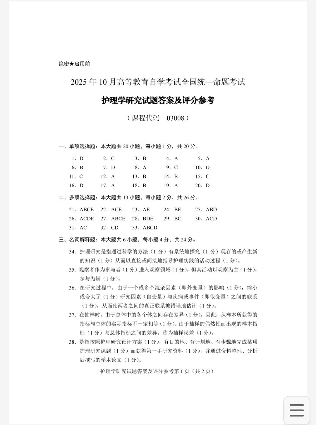 03008护理学研究真题及答案汇总🔥