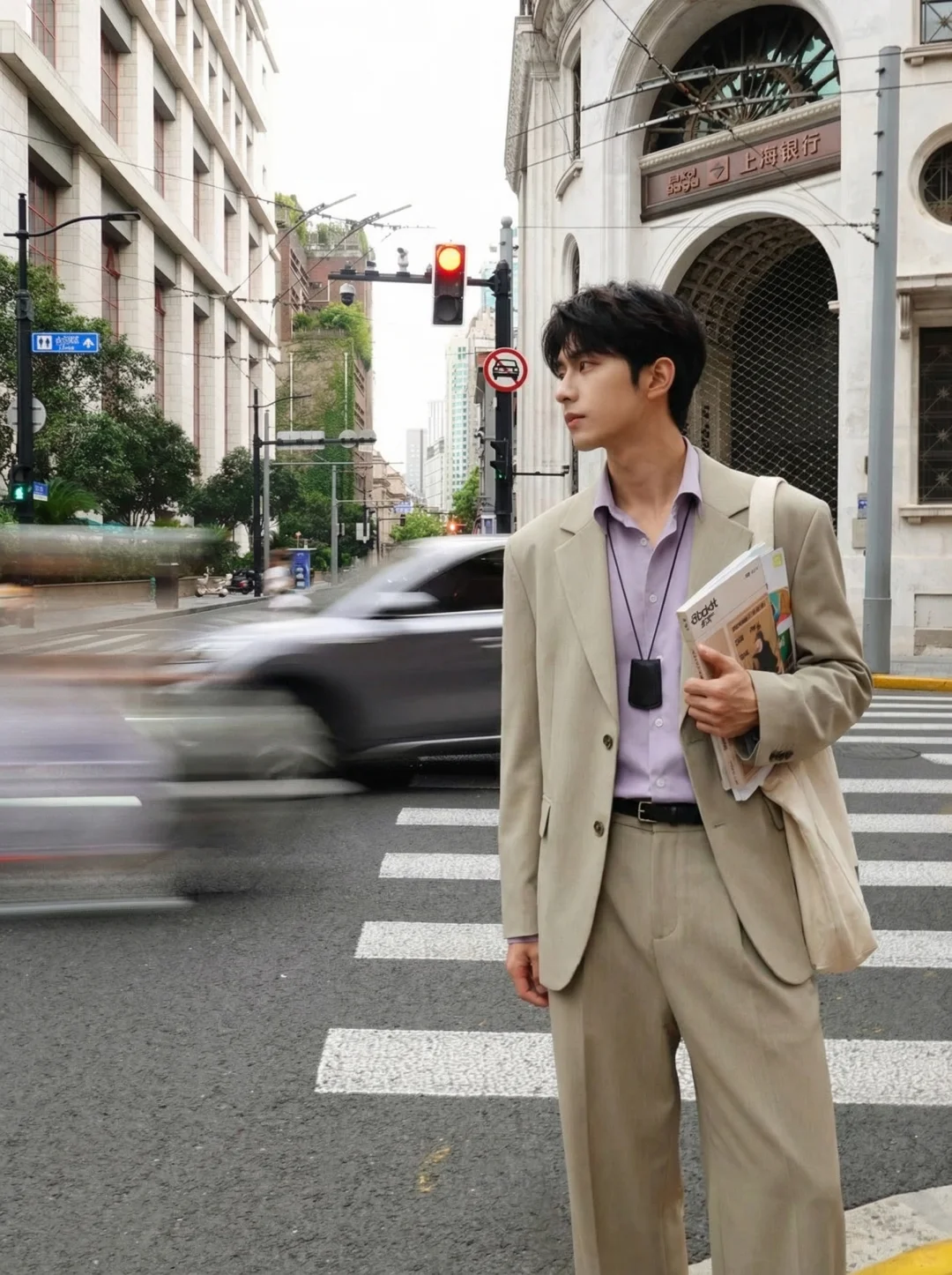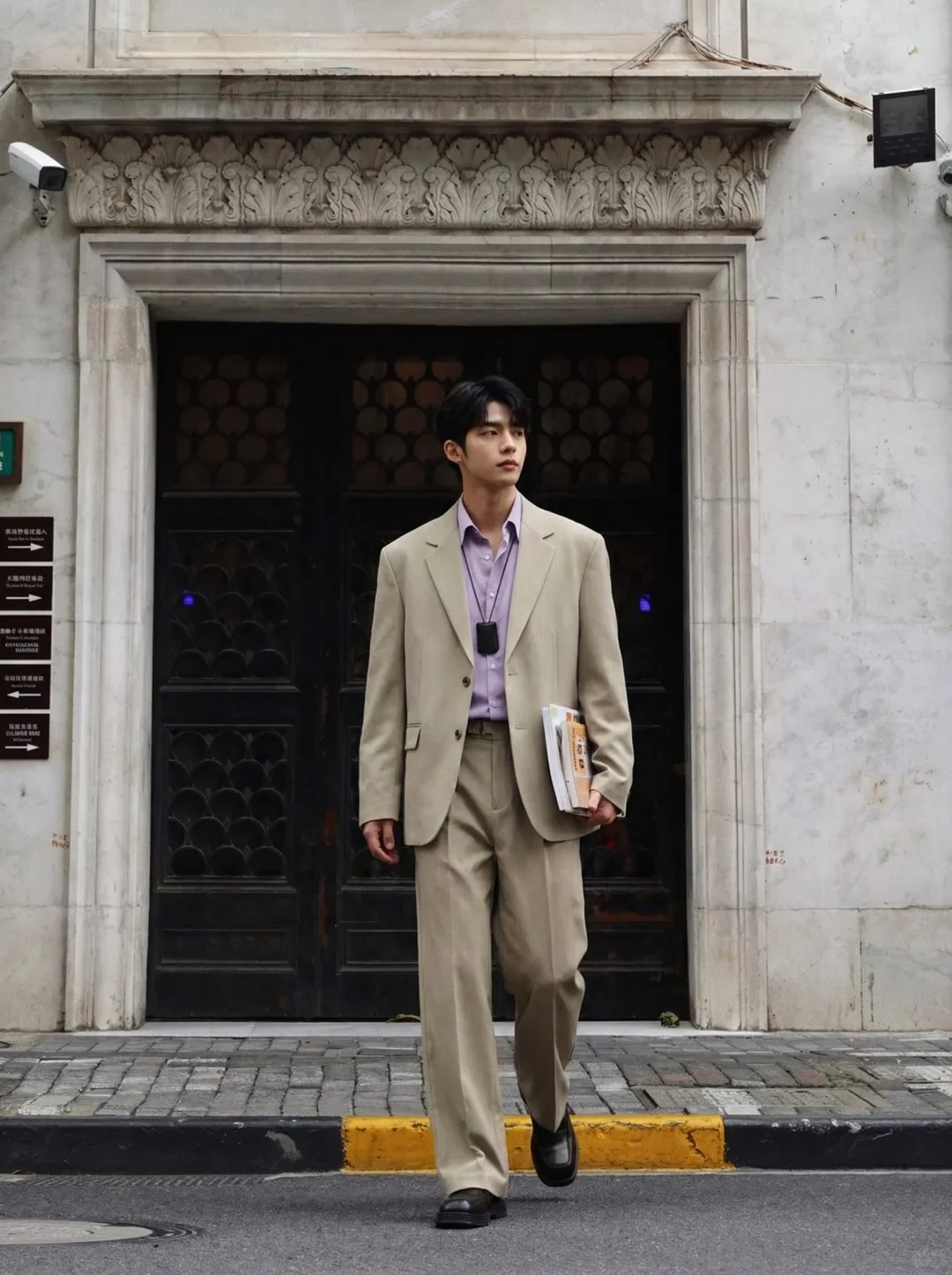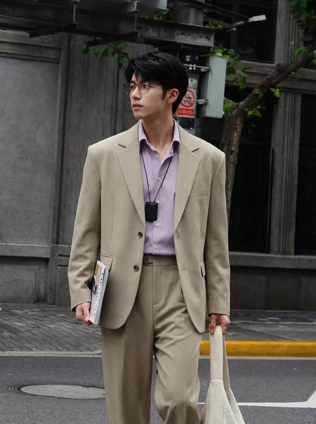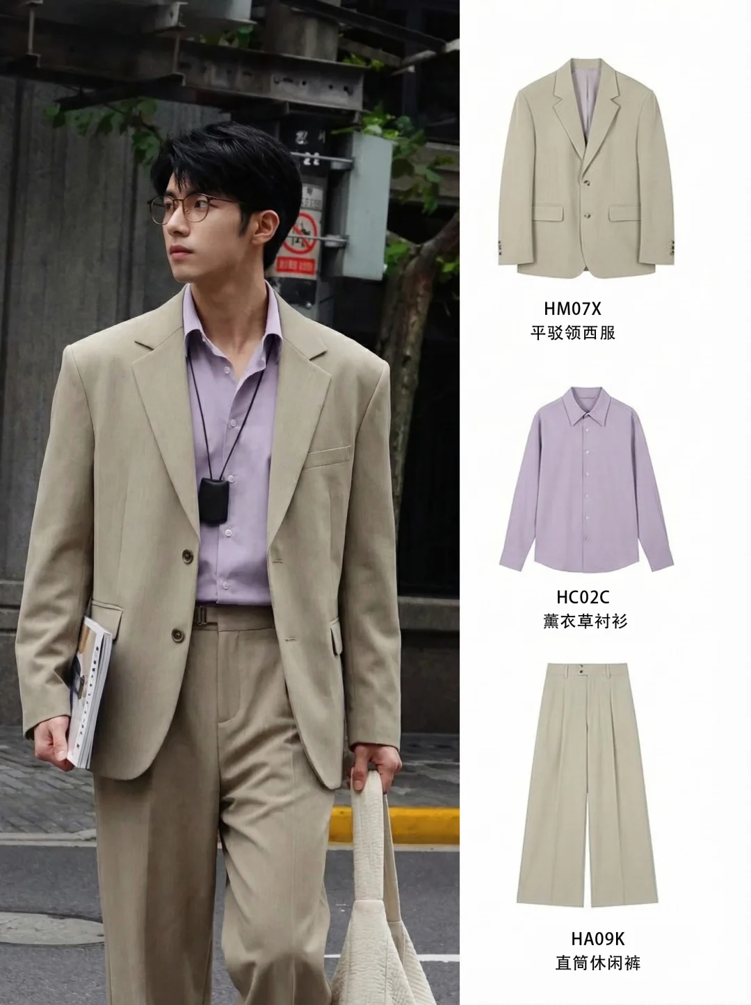 “紫色,是男装里最高级的叛逆。” 💜但当你把低饱和度薰衣草紫揉进干练的平驳领西装里,你会发现一种久违的、属于成年男性的斯文与克制。让整体视觉沉稳了下来。配上一条直筒亚麻休闲裤,打破了传统西装的拘束感。这种“Clean Fit”的精髓就在于:看似没用力,实则每一处比例都经过推敲。好的西服本身就是一张名片:代表你有稳定的审美,以及拒绝随波逐流的底气。