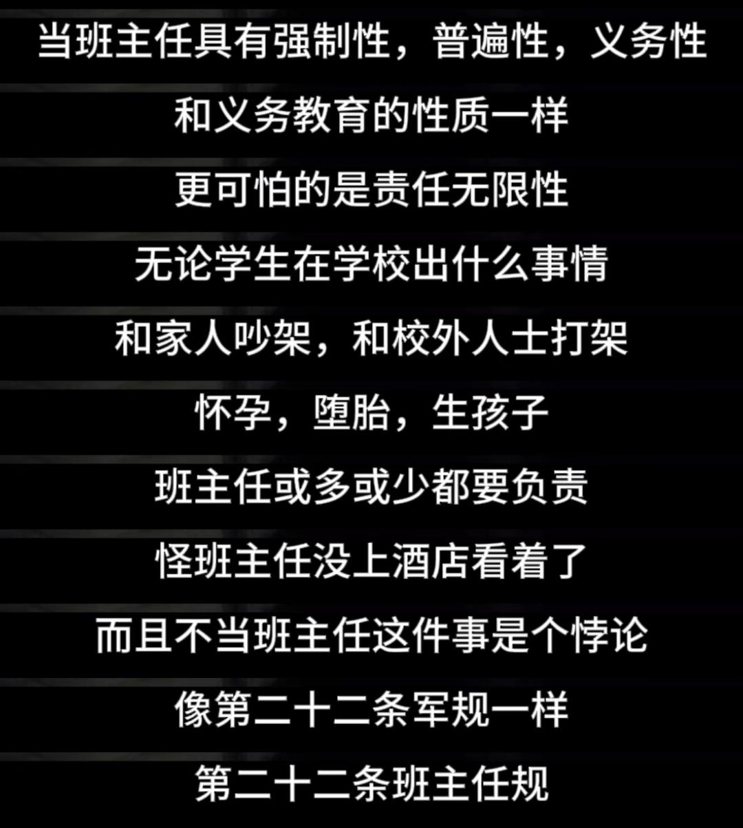 委屈真不是矫情,是无数老师藏在心底的崩溃,班主任的“无限责任”,到底是谁规定的[伤心]? 谁懂啊!现在的班主任,早就成了无限责任制的“全能保姆”。学生在别的老师课上受伤,班主任来兜底;放学疯跑相撞,副班不管,班主任来擦屁股;课堂秩序失控、家长无理取闹,所有锅全往班主任身上扣。 教师不是超人,没有三头六臂。要教研、备课、提能,要应付各种报表、检查、突发状况,每天起早贪黑10小时,用多出来的2小时硬生生熬没了寒暑假。 可当我们倾诉这份不易时,换来的却是一句轻飘飘却能压死人的一句话的“别矫情”。 没人懂我们想管学生却怕担责的无奈,没人懂我们面对失控课堂却无抓手的焦灼,没人懂我们24小时在线、全年无休的精神内耗。 班主任的无限责任,到底什么时候是个头?班主任 教师的角色为什么越来越复杂 教师 老师的压力如何解除?