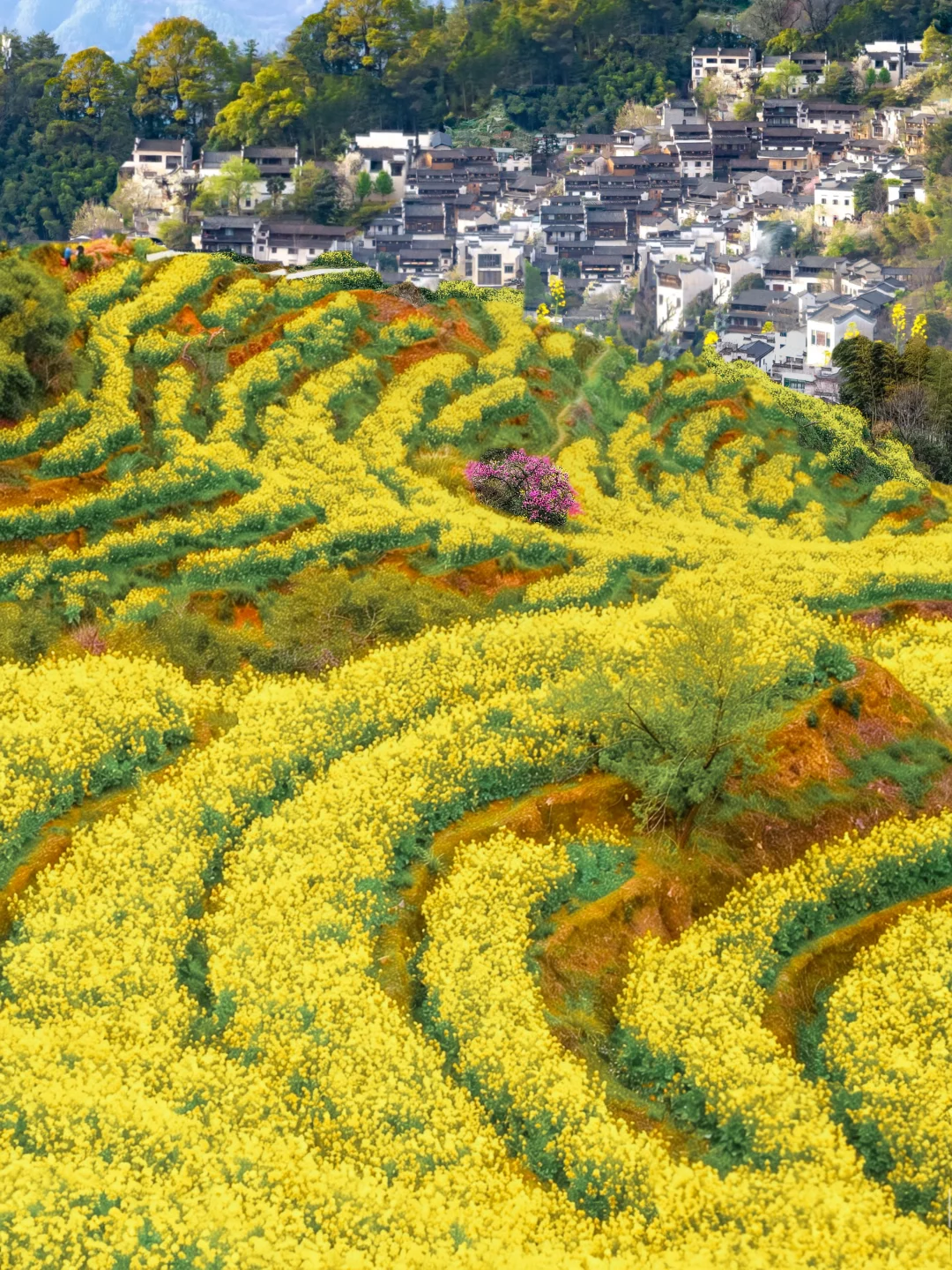 在篁岭的二期花海步道,这里春意🌸正浓