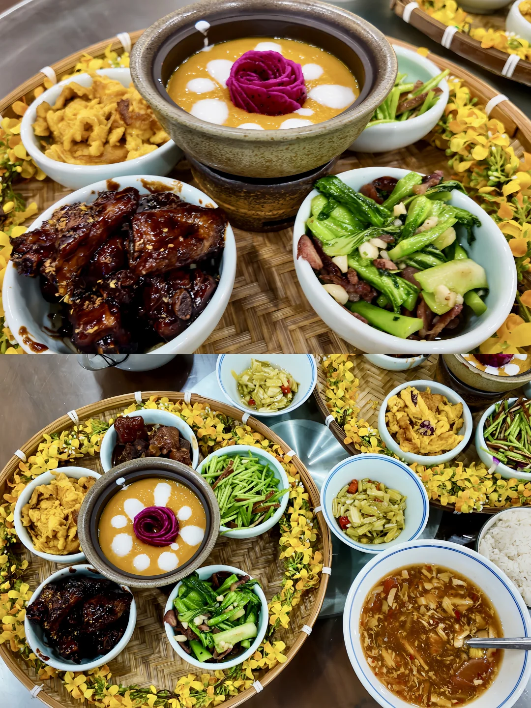 4️⃣住宿推荐住在竹山酒店,距离二期花海最近,离天街食府很近,可以品尝一下鲜花宴,里面有很多应季食物,糖醋排骨很好吃😋