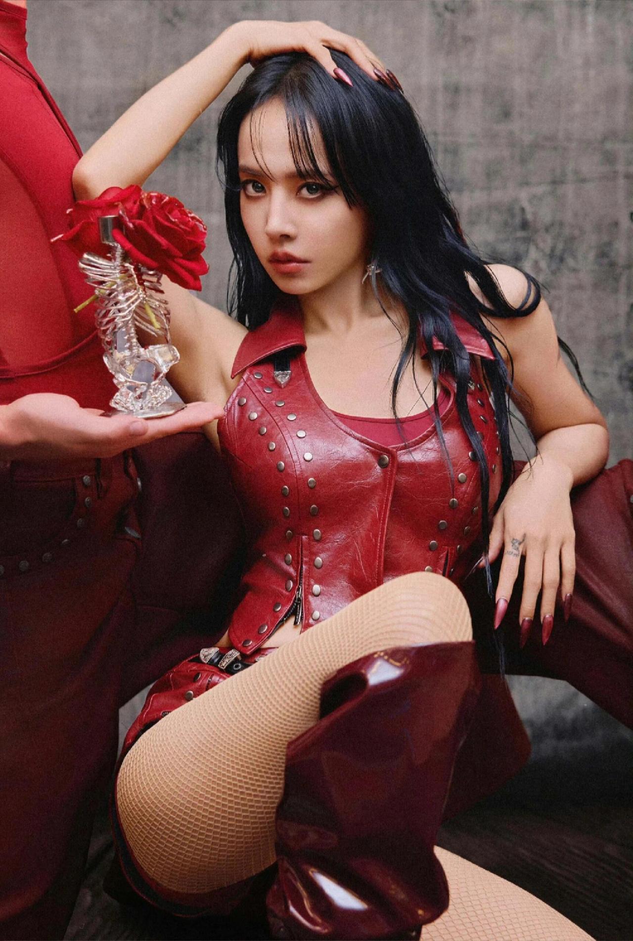 蔡依林 红与黑的狂想 酒红皮革裹住骨与火 铆钉在暗里,敲出锋利的歌 黑长发垂落,是未驯服的河 漫过肩线,漫过腰窝的轮廓 指尖的红,是淬了毒的玫瑰 纹身的蛇,在皮肤下沉睡 骨与花的容器,盛着致命的美 谁的目光,敢在这锋芒里沉醉 双臂举过头顶时 世界都成了背景 屈膝的瞬间,是野性的觉醒 每一寸线条,都在宣告主权 红是热烈,黑是深渊 我是自己的神,在光影里加冕 网袜与长靴,踩碎世俗的规训 铆钉与皮革,缝合自由的灵魂 玫瑰在骨上开,欲望在眼底生 这一场红与黑的盛宴 我是唯一的主角,永不谢幕的神