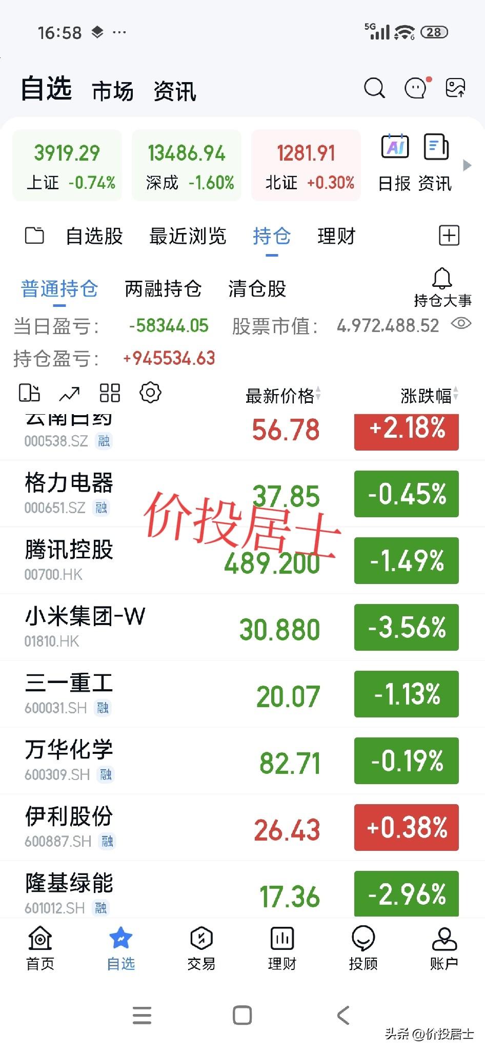 刚才我出去散步看看外面的花花草草了[笑哭]今天我们这天空很蓝,青草很绿,花儿很红,让我心情很好[赞] 刚看了一下实盘,还好,当然对于我这种不害怕下跌的人来说,好像就没有不好的时候。我对此给大家说过,本人其实很喜欢股票下跌! 其实资本市场很多时候是反人性的,暴风雨来的越猛烈的时候,越是临近反转的时候。就像22年港股砸的昏天暗地,24年的2635.09点我们的A股砸的昏天暗地。反而那个时候开始了绝地大反击! 我是把承受下跌看成自己的一种付出,把不被短期波动左右看成自己的修行。看看这个股市像极了人生,充满了曲曲折折,起起伏伏,须菩提尊者问圣贤,云何降伏其心?圣贤答,应无所住而生其心[祈祷]